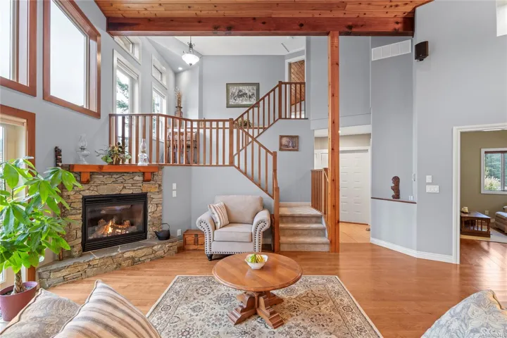 Located in the Fairwinds community, this home offers multiple outdoor decks, including a floating deck in the backyard overlooking views of Dolphin Lake. A timbered entry welcomes you inside, where vaulted ceilings & southern exposure fill the great room w/natural light. The living room offers a propane fireplace, creating a warm gathering space. The thoughtful floorplan offers a wonderful sense of space while providing privacy between the 3 bedrooms. The eat-in kitchen features S.S. appliances & access to a sunny patio. Practical features include a 200 amp electrical panel, concrete tile roof, heated garage, storage shed, & ample storage throughout. The fully fenced yard has mature landscaping, offering private outdoor spaces to relax in both sun & shade throughout the day. Walk to Schooner Cove Marina & Nanoose Bay Café, explore trails around the lakes, or enjoy the nearby Fairwinds Golf Course & the Wellness Centre w/pool, gym, and tennis. Data & meas. approx. ver. if import.