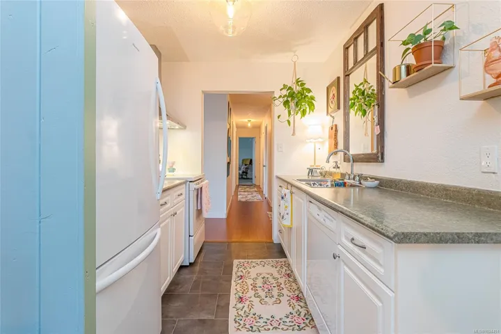 Rare top-floor corner condo offering over 1,400 sq ft of bright, single-level living with panoramic mountain and city views. This spacious 3-bedroom, 2-bath home features a generous entryway, hardwood floors, updated kitchen and recent paint. Fridge, stove, dishwasher, apartment washer included. Lots of storage available in the unit as well as a separate 4 x 8 foot storage unit and separate bicycle storage. There is a dedicated dining room with window plus a large pantry/storage cupboard. The primary bedroom includes a walk in closet, ensuite and an electric fireplace. Enjoy the fourth floor views from most of the rooms. Two additional bedrooms provide flexibility for family, guests, or a home office. Located in a wonderful central location, you’re just steps from shopping, theatres, restaurants, recreation, and the popular Saturday market. The well-run, self-managed strata is proactive with maintenance and boasts a healthy contingency fund. All ages and rentals permitted.