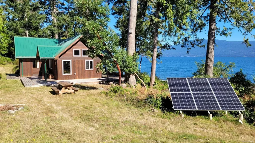 Experience privacy & tranquility on this gently sloping walk-on waterfront property with breathtaking views of the Sabine Channel, Texada Isl& Marine Isl. This beautiful 600 sqft cottage offers a blend of rustic charm & modern comforts. Set on 1.2 acres this off grid cottage offers sustainable living & comfort. Enjoy fishing, kayaking & swimming right from your doorstep. Zoning allows a full sized home may be added & the cottage as a 2nd home. The cottage features vaulted ceilings, skylights, wood stove, primary bedrm, two charming sleeping lofts, (sleeps 8 – bedrm, 2 lofts, couch-bed) fully equipped kitchen, new on demand hot water sys, a private outdoor shower & 2 outhouses. Westcoast style designed in natural surroundings. This immaculately maintained property has a gated driveway entrance, on demand hot water, drilled well, water storage, solar power system, back up generator, new expansive wrap around deck, garden shed & workshop for all your storage & project needs.