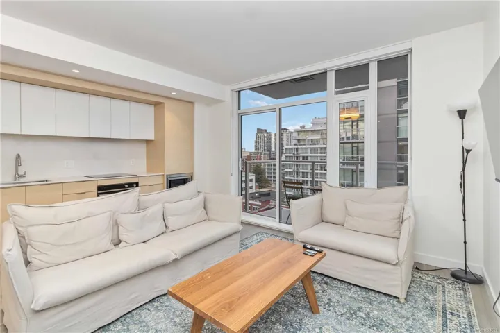 Welcome to Yates on Yates, a quality-built concrete and steel building in the heart of downtown Victoria, close to all your favourite shops, restaurants, and everyday amenities! Vacant and move-in ready, this quiet 12th-floor one-bedroom home features floor-to-ceiling windows that bring in plenty of natural light and offer amazing city views. The kitchen includes integrated Fisher & Paykel appliances, custom cabinetry, and quartz countertops. The open living area leads to a covered, well-sized balcony, ideal for enjoying the city outlook. The bedroom offers a generous walk-in closet, and the bathroom includes heated floors. A heat pump provides efficient heating and cooling year-round while keeping energy bills down. Additional features include in-suite laundry, and residents also enjoy a common garden areas, lounge space, secure bike storage, a pet wash station, and a rooftop patio with BBQs! The perfect option for convenient downtown living.