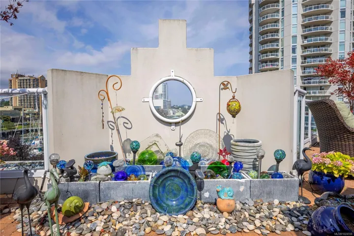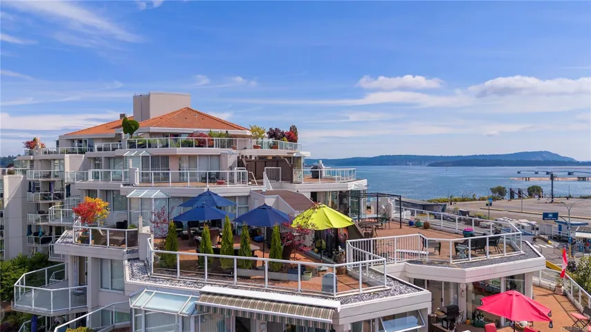 Experience luxury living in this stunning 2 bed, 2 bath 5th floor penthouse condo in the prestigious Gabriola building at Cameron Island, nestled in the heart of downtown Nanaimo. Spanning over 1,700 sq ft of refined interior space, this home offers views of the ocean, city, & mountains through floor-to-ceiling windows & from the expansive 1,000 sq ft private patio. Inside, enjoy rich hardwood & tile flooring, granite countertops, & sleek, newer cabinetry that blends functionality with elegance. The open-concept layout seamlessly connects the living, dining, & kitchen areas, creating a bright & inviting atmosphere. The spacious primary suite features a luxurious ensuite & a walk in closet dressing space. With 2 underground parking spaces & large storage room. With unbeatable walkability to the waterfront, shopping, restaurants & entertainment this exclusive penthouse offers the best of west coast living. 1 Dog or Cat friendly (Max 25 lbs). All data is approximate and to be verified.