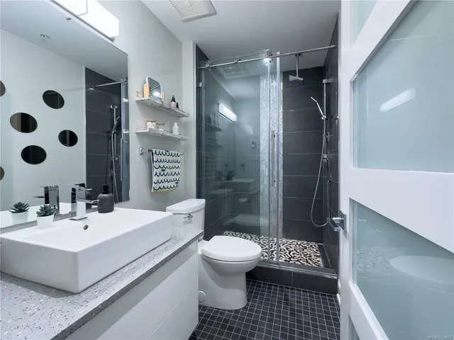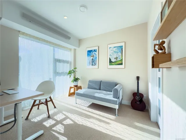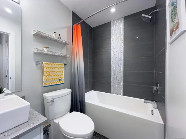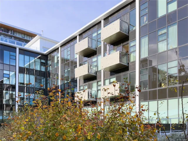 Quiet, light, and a SOUTH FACING layout that works. Welcome to The Wade on Fernwood’s downtown edge. A 2021 steel and concrete low rise with new home warranty coverage, built for calm downtown living. As one of the best situated units it faces landscaped gardens, so your backdrop is fruit trees and south light, not traffic. Floor to ceiling glass brightens a generous, functional open living/dining core with easy flow for everyday life and entertaining, while two separated bedrooms keep mornings private. Cook with Fisher & Paykel (gas cooktop + wall oven + dishwasher), gather at the island, then step onto the balcony with natural gas hookups. Heated tile bath, smart Lutron lighting and efficient radiant heat make it feel quietly luxurious. Add a rooftop garden plot, secure parking, storage locker, caretaker, bike rooms + wash station, and you’ll spend more time living than managing. Walk/Bike Score 97. Cook St Village, parks, groceries, cafés, transit & the ocean are close at hand