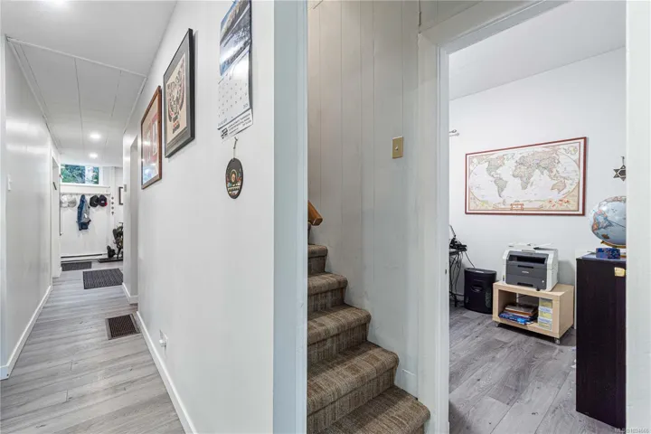 A pellet stove and a gas furnace provide cozy warmth during the winter months. Downstairs, the basement offers flexibility for an additional family rec or game room or even a bedroom. The massive double garage with convenient lane access offers ample parking. Walk to the Sea Wall, Bowen Park, and downtown in minutes! Two of the bedrooms don’t have a closet. All information provided must be independently confirmed by Buyer if deemed material.