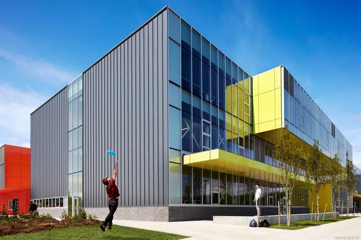 Perched on the top floor with a bright south-east exposure, this corner suite at Eliza feels instantly uplifting. High ceilings and expansive windows draw in the morning sun and frame ocean and mountain views, while elevated finishes—from stainless steel appliances to custom cabinetry and quartz countertops—create a polished, contemporary backdrop. The 2-bed, 2-bath layout flows beautifully onto a spacious deck that extends your living space outdoors. With two secure parking stalls and a pet-friendly community welcoming dogs of all sizes, convenience is built right in. The complex features wonderful amenities including a rooftop terrace, owner’s lounge, full gym, and dog wash station set in the convenient Royal Bay community with cafés, groceries, Royal Bay Secondary, and the beach just steps away—life at Eliza feels like coastal living made easy. Move-in ready, GST paid!