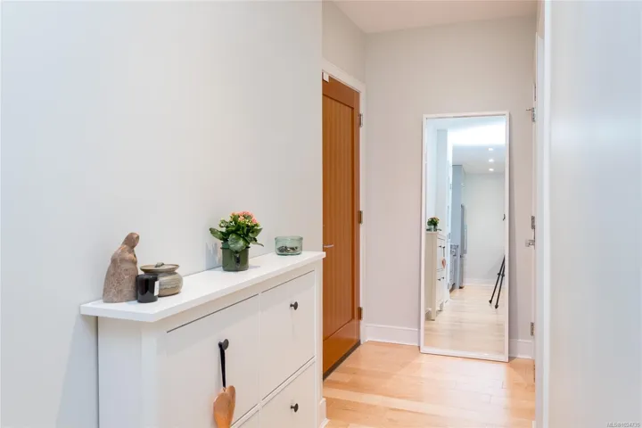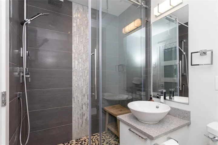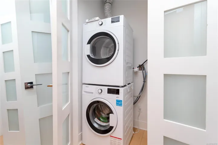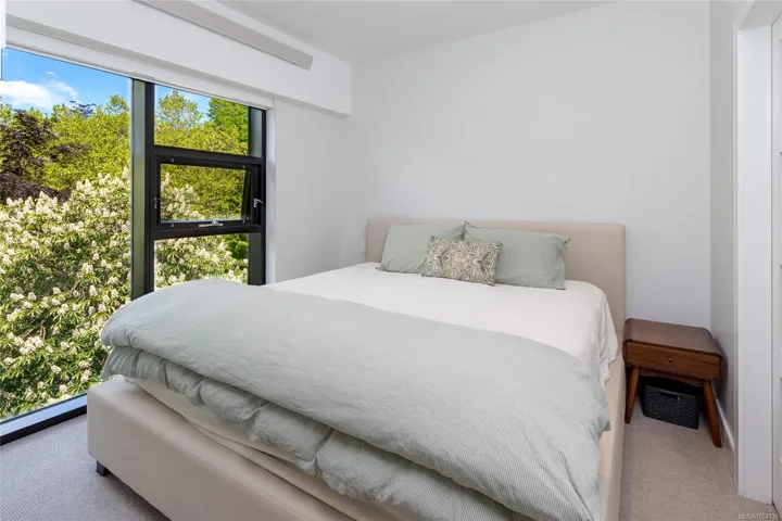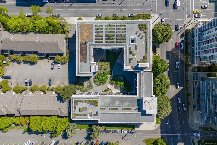 Welcome to The Wade—a sophisticated, 2021-built low-rise steel and concrete building that combines modern design with lasting quality. This top-floor corner unit offers over 750 sqft. of bright, thoughtfully designed living space with large windows & serene park views. Open-concept layout features a gourmet kitchen with quartz countertops, stainless steel appliances including a gas cooktop, two toned full-height modern cabinetry & large island with an eating bar—perfect for entertaining. Primary bedroom includes walk-in closet and ensuite with heated tile floor. Additional highlights include in-suite laundry, second full bathroom with heated tile floors, private balcony with a gas BBQ hookup and abundant natural light throughout. Enjoy access to a stunning rooftop terrace with sweeping city views plus your own garden plot and private peaceful courtyard. Well run strata welcomes 2 dogs (any size) with access to secure underground parking, separate storage locker & bike room.