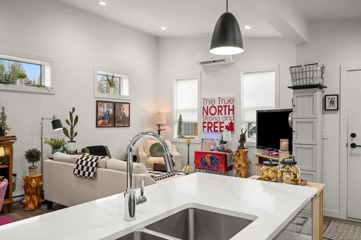 No GST – Save Money! Welcome to this incredibly stylish 2-bedroom, 1-bath rancher located at The Flats in Cumberland, a thoughtfully designed community of modern homes set in an idyllic location. Ideal for first-time buyers, small families, or retirees, this home offers comfortable one-level living with vaulted ceilings and a bright, open feel throughout.