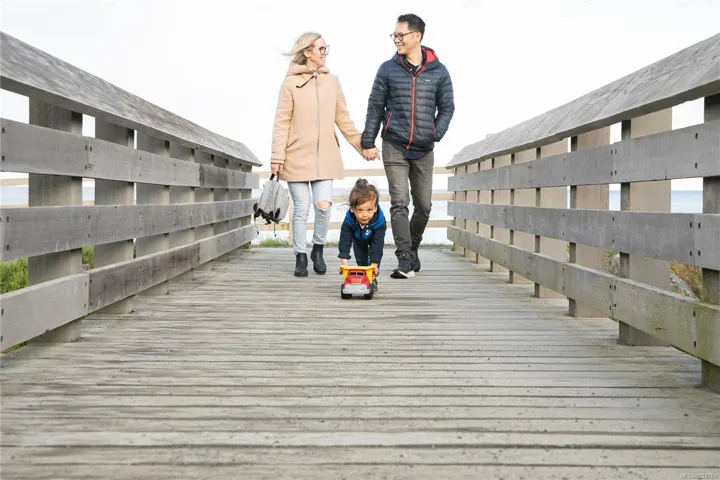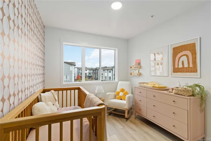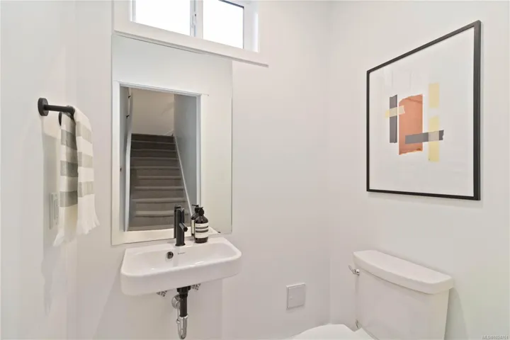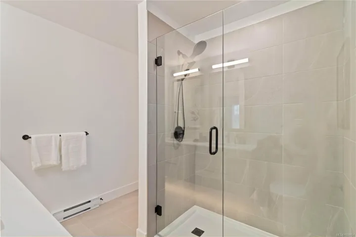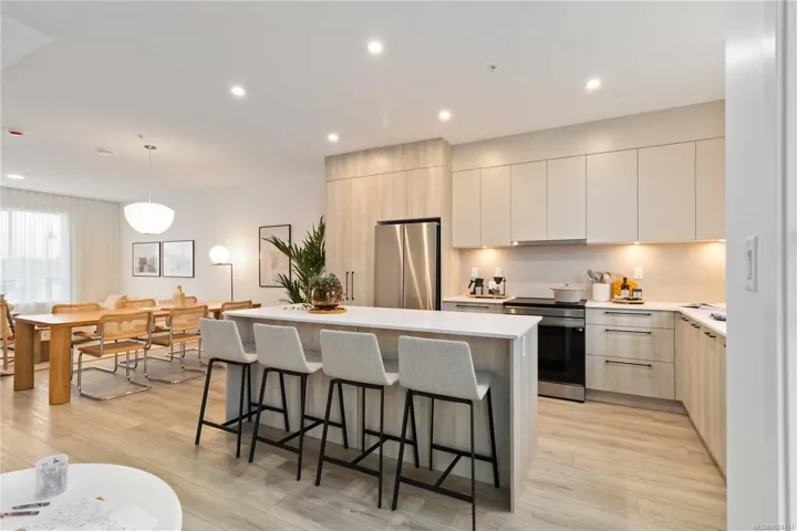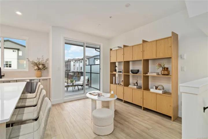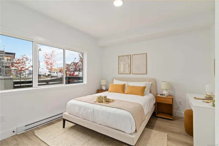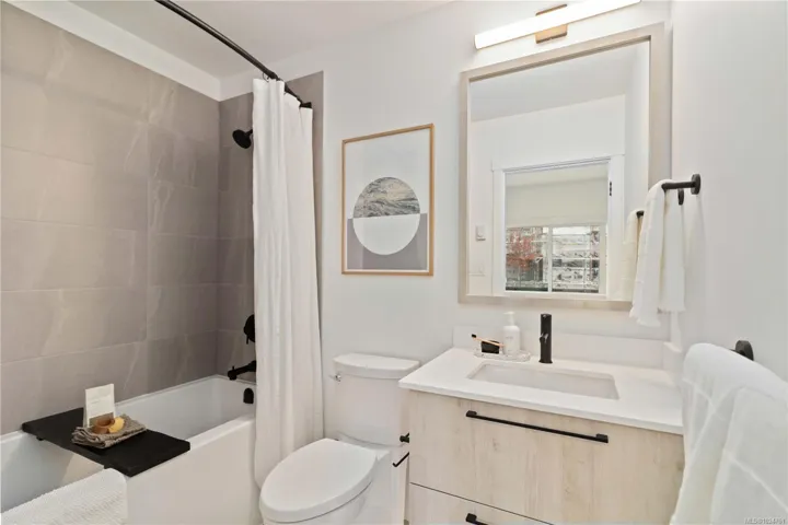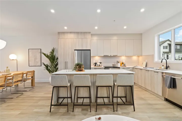 Exceptional townhome showcasing impeccable craftsmanship & sophisticated finishes throughout. Soaring 9-ft ceilings anchor the open-concept living spaces, enhanced by luxury vinyl plank flooring & elegant electric fireplace that adds warm ambiance to the living rm. Gourmet kitchen features engineered stone countertops, custom two-tone cabinetry with matte black hardware, & modern appliances. Elevated bathrooms with floating vanities with under-cabinet lighting, frameless glass shower enclosures, & large-format tiled surrounds. Energy-efficient ductless heat pump technology, a built-in garage, & expansive private balconies further enhance the refined living experience. Located minutes from the ocean, nature trails, and the wide range of amenities at the Commons Retail Village. Visit the HomeStore at 394 Tradewinds Ave, 12–4 pm (Closed Wednesdays). All measurements are approximate. Price is plus GST. Photos are of a similar show home.