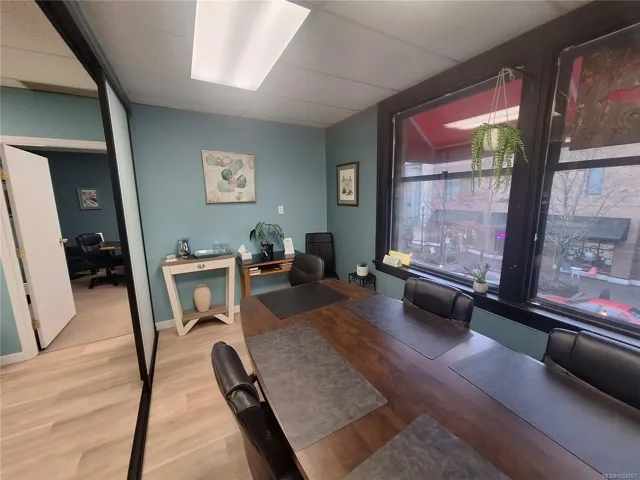 This second floor unit is located at the end of Commercial Street in downtown Nanaimo. The bright lease space opens into a open office area with a Board / Meeting room leading off from the open office area. There is additional room located off the back of the Board / Meeting room that could be used as an office or storage room. The unit has easy access to the stores and Restaurants in downtown Nanaimo and close to both the Nanaimo seaplane port and new fast foot passenger ferry service between Nanaimo and Canada Place in downtown Vancouver.