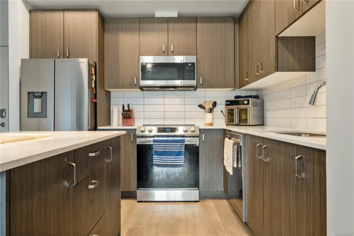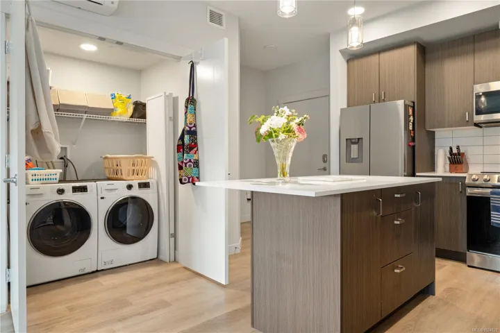 Welcome to Mosaic, Parksville’s newest award-winning, eco-friendly, modern contemporary building. This stylish 1 bed, 1 bath unit offers 675 sqft of efficient, high-end living in the heart of one of Vancouver Island’s most desirable communities. Enjoy triple-pane windows, a heat pump for year-round comfort, energy recovery ventilation, sleek modern finishings, and thoughtful design throughout. Enjoy quartz countertops, soft-close cabinetry, and vinyl plank flooring. Pets and rentals are allowed, making this a flexible investment or perfect home. Includes storage and parking. Located just steps to shops, restaurants, and world-class beaches—live where you vacation! Measurements are approximate; please verify if important.