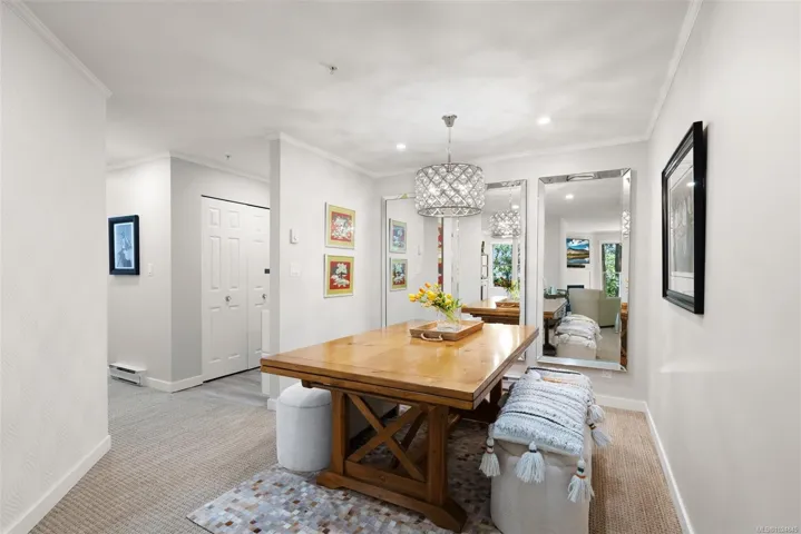 Step into a Haven where floor-to-ceiling windows welcome the day, and evenings look like a page from Canadian House and Home. The Parisian-chic style Kitchen and open concept living invite gatherings or quiet moments, while the restful balcony feels like you’re in the treetops under a south-western sky. Nestled at the end of a cul-de-sac. This family-friendly pet-welcoming community promises tranquility and belonging. A spacious Primary suite with walk-in closet, beautifully updated bathrooms (the fish wallpaper is delightfully whimsical and Stylish: “peel & stick” for easy removal). Underground parking and near Tennis and great Parks, Coffee shop, the Italian Bakery, Uptown amenities and boutiques, Groceries, with easy transit to UVIC or Camosun, Beaches, and Commonwealth Rec Centre. Here comforts of home and a vibrant neighbourhood come together beautifully, AND the development next door has been canceled!