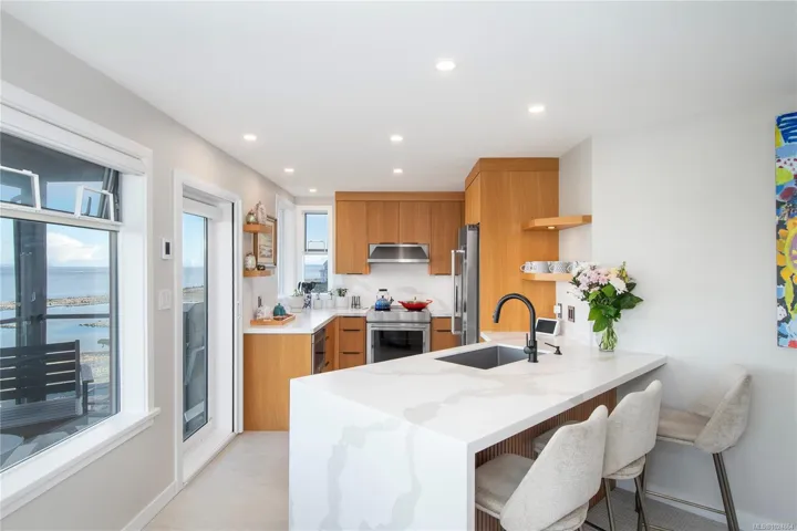 Renovated in 2023, this luxury, custom, professionally designed waterfront home is a testament to impeccable taste and uncompromising quality. Premium finishes and a “spare-no” approach to design, this residence is the pinnacle of sophistication. Embrace the epitome of modern coastal living in this exquisite 1,076 sqft condo. This masterpiece offers unparalleled ocean views, coastal mountains, and ever-changing marine activity. Custom solid oak millwork is handcrafted and installed throughout using the traditional clamp-and-glue method. Heated tile floors, solid oak slat floor-to-ceiling closet doors and solid oak shelving. Hidden Harbour gives you access to a pool and hot tub, private moorage, RV parking and immediate access to the beach. This is a lifestyle upgrade that offers the perfect balance of luxury, comfort, and natural beauty. Your dream of coastal living awaits – seize this opportunity to make it a reality.