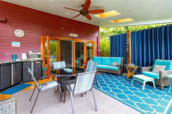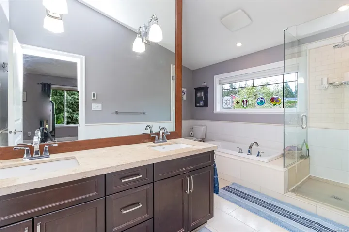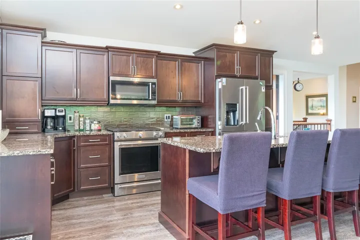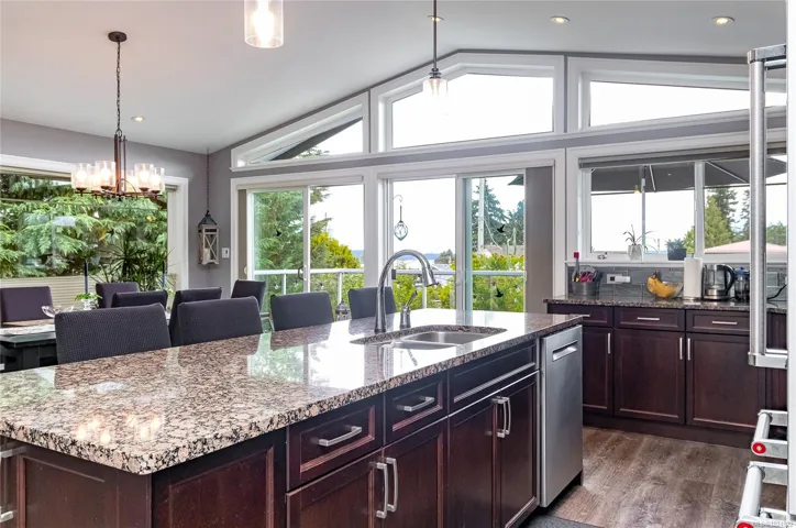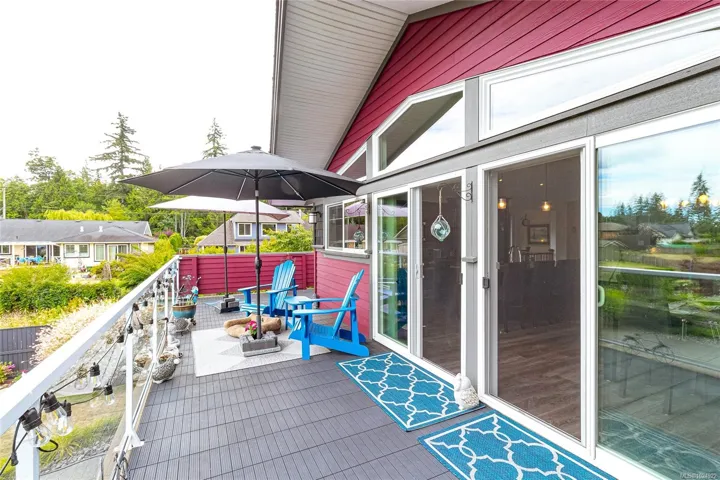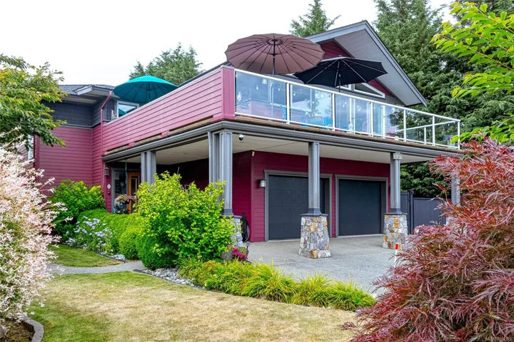 Spotless ocean view home on half acre in Saltair. From the moment you drive up and the gates open, you will be captivated by the attention to detail and quality in this home. Grand entry with high ceilings to main floor. The lower level offers 2 spacious bedrooms, both with walk in closets and one with a cheater 4 pce ensuite. The family room has french doors to your back yard covered outside fully equipped kitchen. Enjoy the views and peacefulness of your water feature, and lush garden oasis. Enjoy the upstairs with its open concept living and floor to ceiling windows. Newer appliances in the gourmet kitchen. Cozy living dining room with gas fireplace. Step out onto your front deck and enjoy the ocean views and amazing sunrises! Master bedroom with deluxe ensuite, gas fireplace and built in desk. Organized walk in closet. 2nd bedroom with full 4 pce ensuite. Fully fenced, sprinklers, RV parking with 220. Updated floors, paint in and out, This home is like new and wont disappoint!