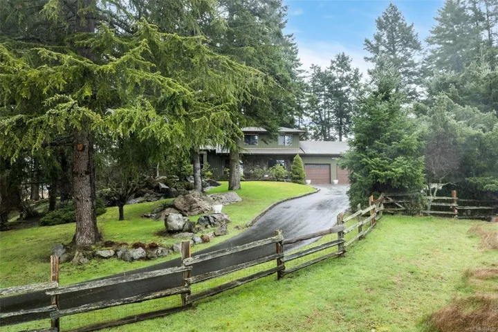 Enjoy space and privacy on an idyllic acreage, just minutes from all amenities. Set on a corner lot along a quiet country road, this 5.49-acre property offers a highly sought-after acreage opportunity. The land is mostly cleared and easy to enjoy. It has a strong well, fenced vegetable garden, and south-facing fields that create a beautiful outlook from the front porch. Multiple outbuildings support a wide range of uses, including a detached shop with sub-panel, greenhouse and several covered carports for trailers, boats, and recreational toys. The well-maintained 1981 family home features 3 bedrooms, 3 full bathrooms, a double garage, mudroom, sunroom, and a family room with wet bar. Recent upgrades: HW tank (2022), generator (2024), and interior paint. Tranquil yet convenient, it’s less than 1 km to Camosun Interurban and under 10 minutes to shopping, restaurants, parks, and hiking trails.