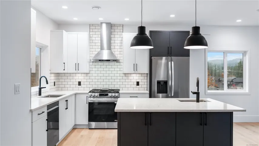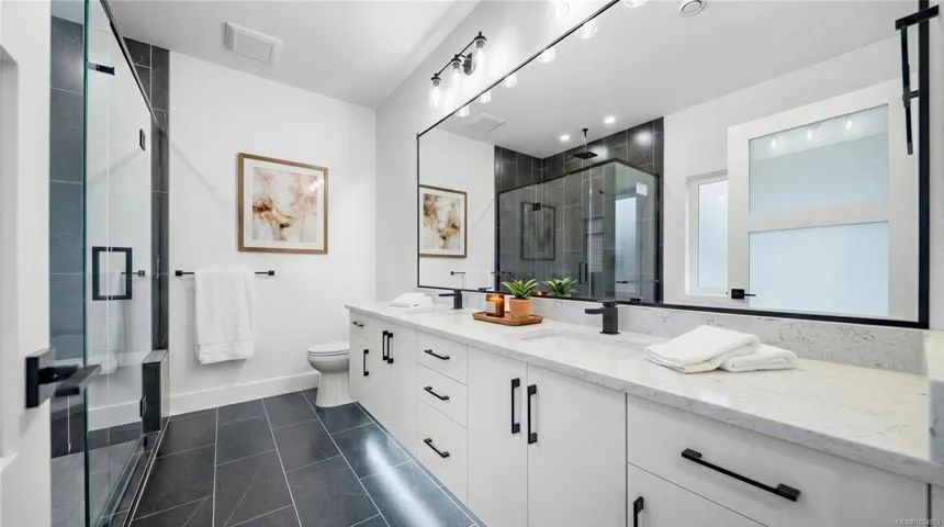 OPEN HOUSE March 19 2-4pm. NEW executive home on a quiet road in sought after Olympic View. The beautifully appointed kitchen is a chef’s dream; large island w/ seating , quartz counters, gas range, premium appliances, and upscale fixtures. Living room gas fireplace, Primary suite on main level, 5 piece ensuite, floating vanities, undermount lighting, heated floors, large shower, walk-in closet plus large office. Lower level 2 additional bedrooms, games room, plus legal bright self-contained suite includes all appliances plus in-suite laundry. Ultra efficient heating-cooling system, on-demand gas hot water. Double garage w/ roughed in EV charger, even extra room for boat and RV parking! All on a private easy care lot landscaped with premium synthetic lawn. Near Olympic View Golf, Willing Park, walking trails and new schools. Quality by Ash Mountain Construction built to Step Code 4 & full 2-5-10 warranty. Explore the exceptional amenities & design elements that set these homes apart.