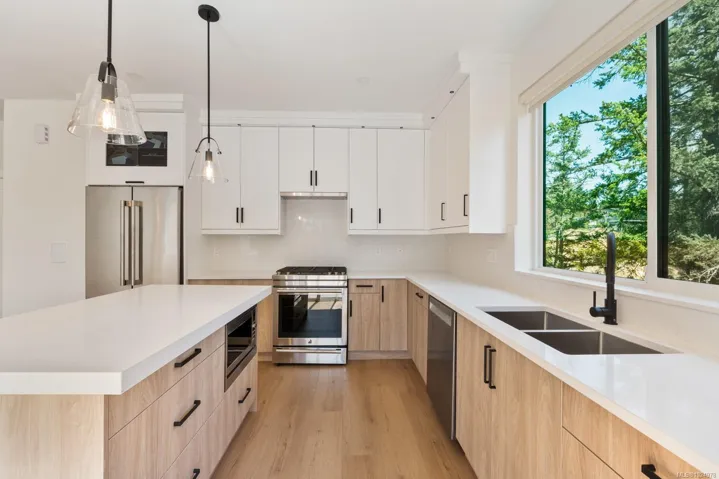 Welcome to The Heights, a collection of 10 single-family homes on a quiet cul-de-sac off Bellamy. Designed with transitional style, these homes offer warm finishes, functional layouts for everyone and timeless appeal. This 5 BED & 4 BATH home spans over 3,000 sqft with a legal suite. Thoughtfully designed from the moment you enter with the warm flooring & windows that fill the space with tons of natural light. The kitchen features two-toned cabinetry, black hardware, SS appliance package and quartz countertops and island. The primary suite features custom wainscotting, walk-in closet with built-ins and an ensuite that will make you feel like you’re at the spa. Retreat to the lower floor where you will find an oversized media/family room, perfect for entertaining or a family movie night. Located minutes from Langford’s recreation, shopping, and all school levels, The Heights is an ideal location for families.
