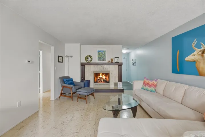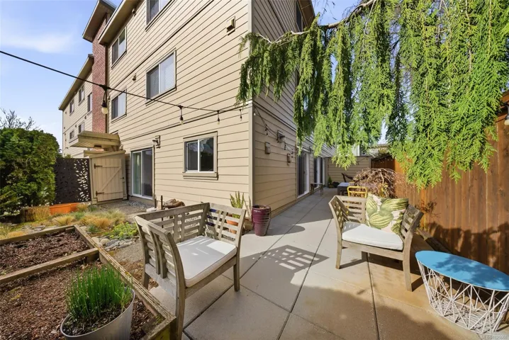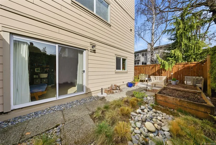 A rare offering on the edge of downtown, this spacious one-bedroom home blends elegant living with exceptional indoor & outdoor entertaining. The well-designed layout easily accommodates large dinner parties, with an entertainment-sized living dining area anchored by a striking wood-burning fireplace. A versatile flex space off the bright kitchen offers room for a home office or the opportunity to extend the kitchen if desired. 3 sets of sliding doors open to an expansive, private patio that is ideal for outdoor dining, lounging & gardening, complete with garden boxes & additional storage. A standout feature for buyers seeking meaningful outdoor space and a small garden plot, something rarely found with one bedroom suites. Quietly positioned away from Rockland Ave, and conveniently close to Fort St shopping, Cook St Village, downtown, the waterfront & nearby cycling routes. Enjoy the benefits of a proactive strata community, plus in-suite laundry, separate storage & secure parking.