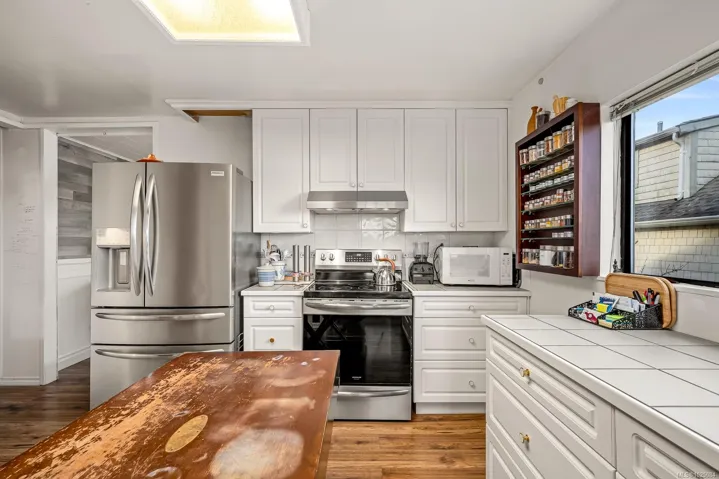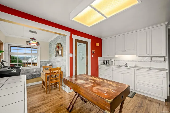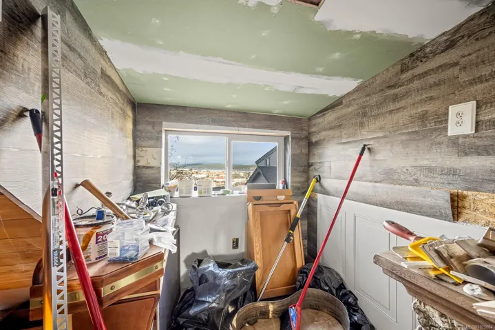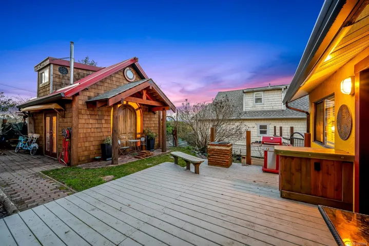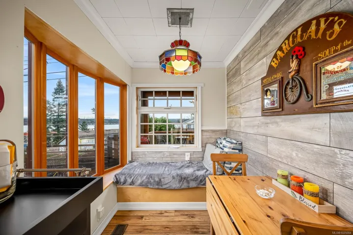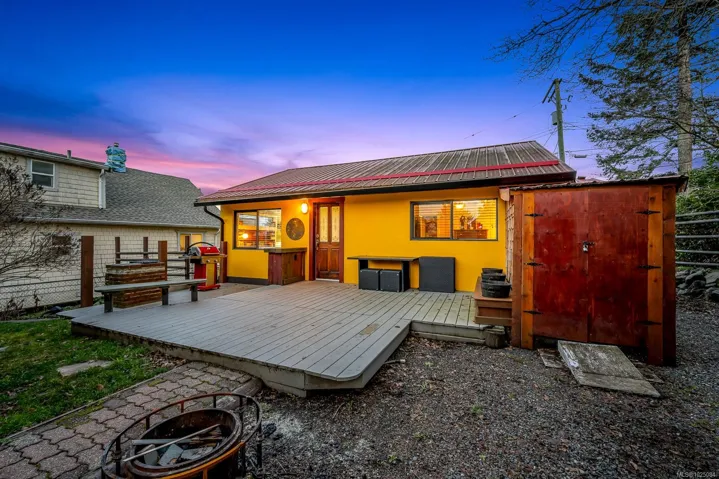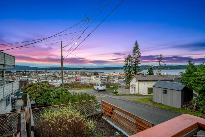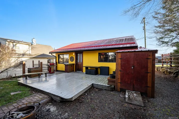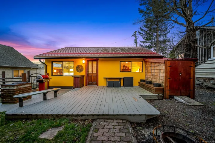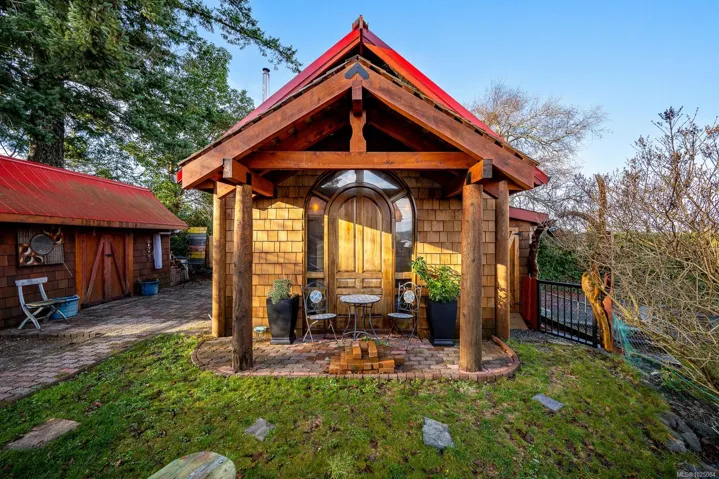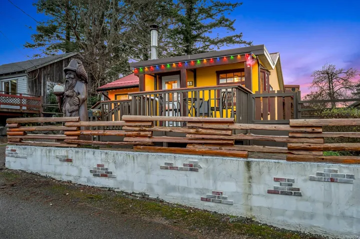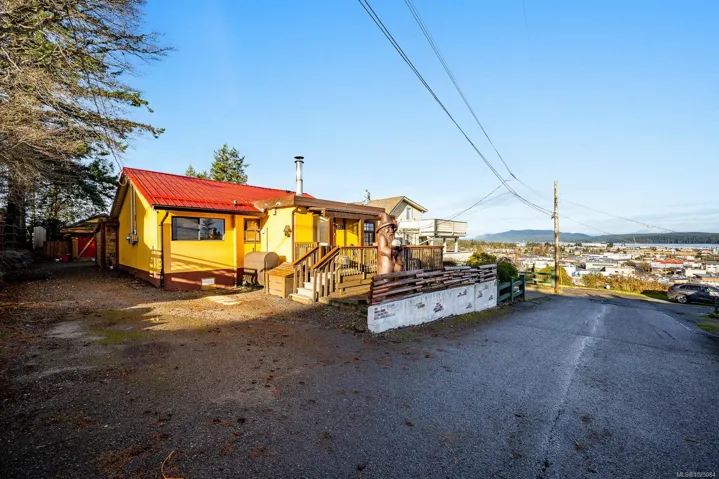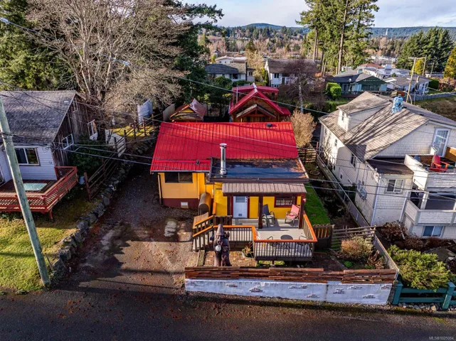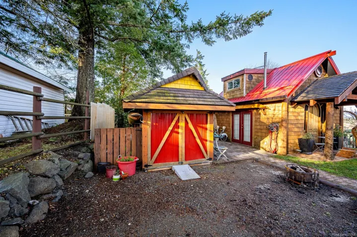 URBAN LIVING WITH VIEWS, CHARM & CHARACTER! This one-of-a-kind 1951 home is full of surprises and unforgettable panoramic views ~ ocean, mountains, city, and even Quadra Island! Inside, 807 sq ft of bright, playful space features a kitchen with stainless steel appliances, pantry, and a cozy window seat, two bedrooms, a custom bathroom, and a funky living room that flows directly to the backyard. The backyard is a showstopper: a custom stunning 18’3” x 14’ workshop with wood stove and loft with potential living space, a mini garage, two storage sheds, and a deck with custom planters, built-in bench, and a Mexican hibachi grill ~ perfect for entertaining. Adding whimsy and a smile, an 8’ carved wooden Gandolph with torch lights up to greet you at the front. Nestled on a quiet dead-end lane with RV parking, this rare & unique gem blends charm, creativity, and community with views that wow at every turn.