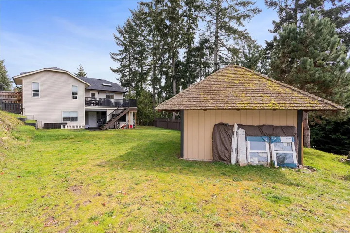 I’m pleased to offer for sale this well layed out 4 bd 3 ba family home on a quiet cul de sac in an ideal family neighbourhood. Built in 1997 on a 13,068 sqft lot, this 2 storey home is only blocks from the ocean in Nanaimo’s prestigious Rocky Point. The main floor is a traditional 3 bed, 2 bath layout with an open concept kitchen, dining and living room. The primary bedroom has a walk in closet, ensuite, separate water closet and sliding door to a rear deck. The lower level adds another full bedroom, laundry facility and a second family room. Upgrades include newer roof, leaf guard gutters, and irrigation system. A flat 20’ x 75’ driveway leads to a 33′ deep double car garage measuring 716 sq ft in total. The side of the home has access to a large backyard and secure RV/Boat/Car Storage. The fully fenced rear yard has an enclosed, powered palapa for a studio/home office/play area/storage. The rear of the home has a private covered hot tub area and nearly new 6 person hot tub.