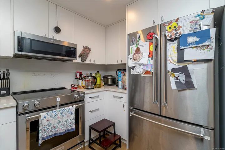 Welcome to The Affinity! This like-new (December 2023) 1-bedroom spacious unit (665 sf) features engineered hardwood floors, quartz countertops and Kitchenaid appliances along with an HVAC system to keep you cool on those warm Victoria summer days, the finishings speak for themselves! In-suite laundry, secure underground parking with EV charging in every spot, separately secured storage locker and bike storage, plus lots of visitor parking. Strata fees includes natural gas domestic hot water system. Balance of 2-5-10 yr Home Warranty. Ideally located just steps from shops, cafes, restaurants, bus stops, and an array of parks and recreation facilities. Families and students alike will appreciate proximity to all levels of schools, including UVic. Some photos were taken before tenant moved in.