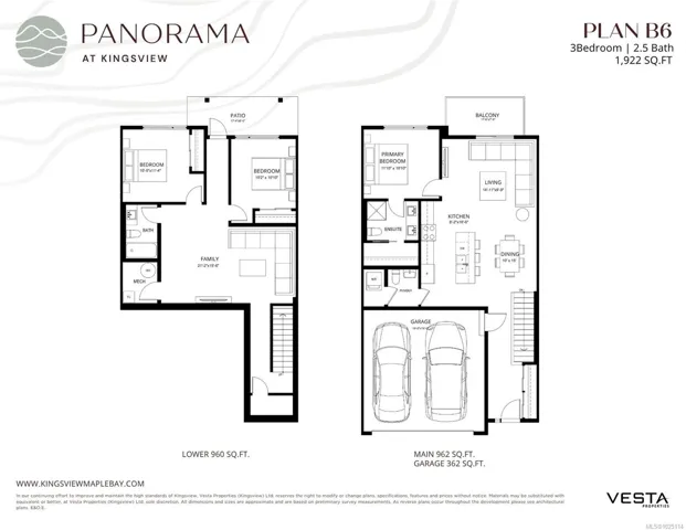 Panorama at Kingsview is a new collection of affordable, well-crafted townhomes designed for easy living in a scenic natural setting. Set in one of the Cowichan Valley’s most desirable neighbourhoods, this community offers beautiful valley views and direct access to hiking and biking trails. This home features approx. 1,922 sqft of thoughtfully designed living space, including 3 bedrooms, 3 bathrooms, and a double car garage. Interiors boast bright, open-concept layouts with premium finishes, modern kitchens, and flexible spaces that suit a variety of lifestyles. Built with Vesta’s signature attention to detail and craftsmanship, these homes also qualify for a PTT Exemption and a FTHB GST Exemption —making them an ideal choice for first-time buyers, young families, or anyone looking to right-size without compromise.
