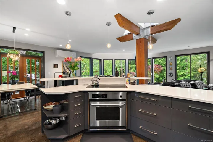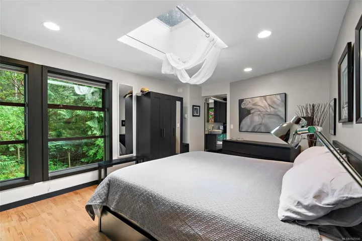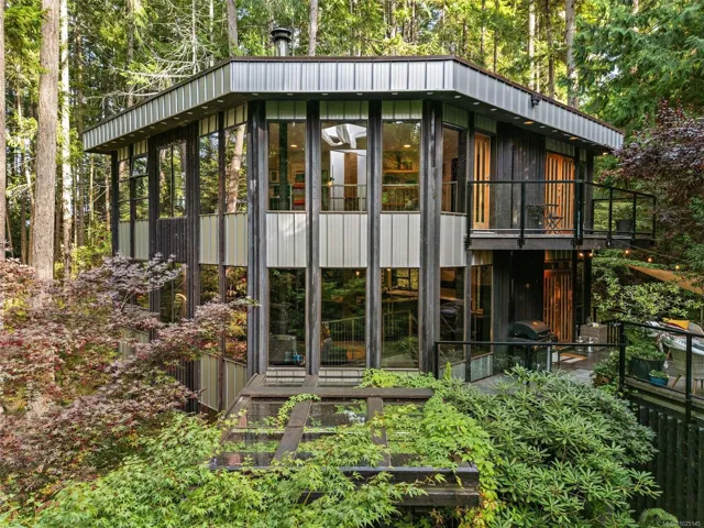 Brand New Roof! IKO 2 ply torch on SPS system, With full product warranty, 10 year workmanship guarantee. Set in tranquil seclusion, this contemporary home featured in Seaside Magazine is a refined expression of West Coast design created for those who value architecture, privacy, and connection to nature. Expansive walls of glass, steel staircases, post-and-beam construction, polished concrete floors, and a gourmet kitchen define a bold industrial aesthetic set within acres of natural surroundings. The three-level layout supports a retreat lifestyle. The primary suite occupies the top floor with a spa-inspired ensuite, treetop views, and flexible living or home office space. Two additional bedrooms and a Jack-and-Jill bath are located on the lower level, ideal for guests, creative studios, or remote work. Two generous decks and landscaped grounds extend living spaces outdoors, offering privacy and a seamless indoor-outdoor experience. Don’t miss out on living in this unique setting!
