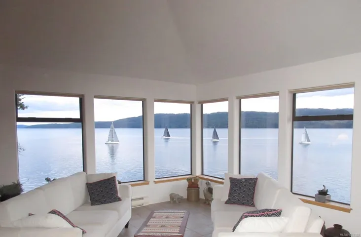 Architect-designed, custom-built oceanfront home bathed in sunlight and nestled at the coveted end of prestigious Scott Point. Perfectly positioned with south-west exposure, this exquisite residence offers breathtaking 180° ocean views from all principal rooms. Thoughtfully sited for ultimate privacy and connection to nature, this 1,650 sq ft one-level home features two spacious bedrooms, an office/den, and an airy vaulted-ceiling living room with banks of sunlit windows. Cozy wood stove, seismic engineering and passive solar design. Low-maintenance, fenced woodland garden nestled among native trees and plantings, enhanced with drought-tolerant exotics, and custom stonework. Shoreline benches for relaxing, or easily launch a kayak or paddleboard. With community water access and a substantial rainwater collection system, keeping gardens growing. Just minutes from town and the Long Harbour ferry; this property is a great opportunity to experience the best of island living.
