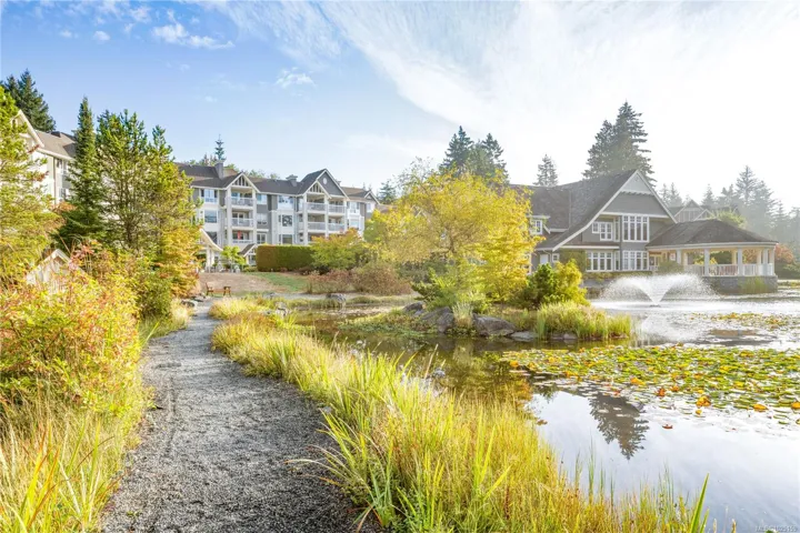 Pond view condo in the very desirable Longwood Community. This 2nd floor unit is just steps from the elevator and stairs and located in the Carisbrook building. Entering the home is the kitchen, which has lots of counter space for all your cooking. The dining room area opens up to the living room, which features a natural gas fireplace, and has access to your balcony where you can enjoy your quiet morning coffee overlooking the pond. The primary bedroom also opens up to the balcony to take in its share of the pond views, and also features 2 separate closets and a 4pc ensuite. On the opposite side of the primary bedroom is the second bedroom, which of course, also has a pond view too, and access to the 3pc main bathroom. A separate laundry room with storage finishes off this unit. Unit 201 comes with 1 underground parking stall, 1 storage locker, and allows for one small dog/cat. This property is walking distance to all your shopping & social needs.