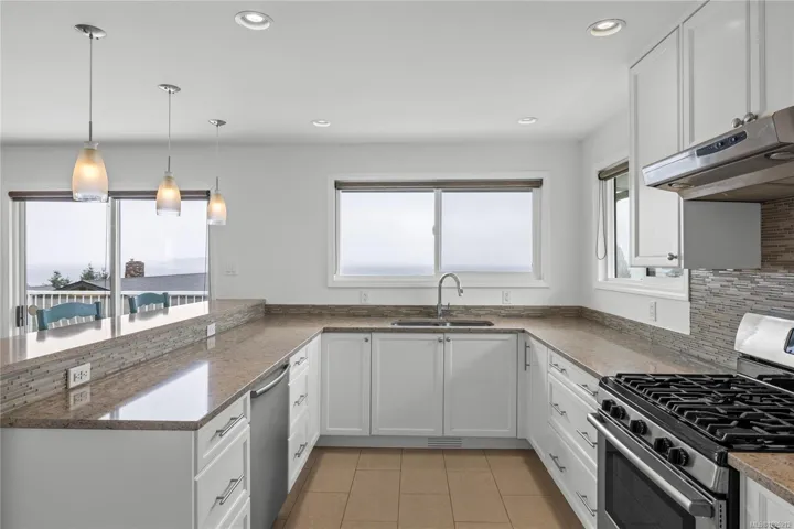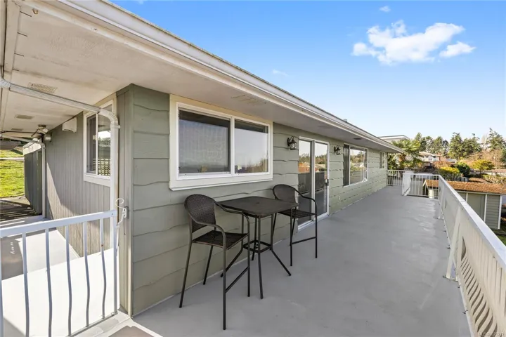Absolutely stunning Lower Lantzville home with expansive ocean views across the Georgia Strait to the Winchelsea Islands & snow capped coastal mountains. Set on a sunny 0.2 acre corner lot just steps to beach access, this prime seaside location is perfect for swimming, kayaking, beach walks & village living, all within minutes of shops, restaurants, pub & school. The main level offers a bright open living & dining area with cozy gas fireplace & immediate ocean views. The updated kitchen features a charming eating area & opens to a spacious wraparound deck ideal for entertaining or relaxing. Two generous bedrooms & full bathroom complete the main floor. The full height walk out basement offers excellent suite potential with separate entrance, large family room with second gas fireplace, bedroom, three piece bathroom, covered patio & storage room. Additional features include updated furnace & heat pump, new carport roof & double carport with level entry for everyday convenience.