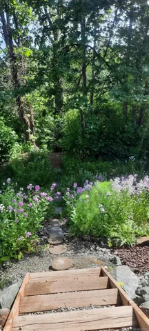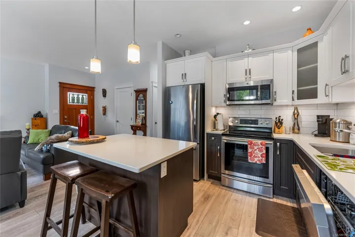 Welcome Home to this well appointed 8yr old, rancher style duplex, offering comfort, privacy and convenience. The layout features luxury vinyl plank flooring throughout, 3 bedrooms, including a spacious primary with a walk-in closet. The kitchen is equipped with quartz countertops, stainless steel appliances and plenty of storage/ counter space. It opens into a bright living area with natural light from large windows, accented by a cozy fireplace. An insulated, 3′ high crawl space under the living area provides a 1000 sq.ft. of heated, dry storage. Sit on the private back deck or by the creek as you watch the deer, ducks, herons, eagles, owls and more as they soar above or forage at the back of the property. The south facing backyard with a handy garden shed is a gardener’s delight. Booked today, for your private tour.