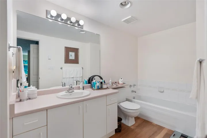 Welcome to Admirals Gate, a sought-after oceanside complex in Esquimalt. This charming & spacious 2-bedroom, 2-bath townhome offers over 1,500 sq ft of bright living space. Enjoy outdoor living with 3 spacious decks perfect for morning coffee or evening relaxation. The generous kitchen includes ample storage, with a breakfast bar and additional eating area. Off the kitchen you will find a spacious living & dining room with a cozy wood burning fireplace. The primary suite offers private deck access, a walk-in closet, & a spa-inspired ensuite with rain shower and soaker tub. The second bedroom is bright and spacious with its own outdoor access. On the main level you will find a spacious attached garage. This well maintained strata also features a common clubhouse that fosters a friendly community atmosphere. Pet friendly bylaws! New hot water tank in the unit. Conveniently located near the E&N Trail, shopping, golf, the military base, & just minutes to downtown Victoria.