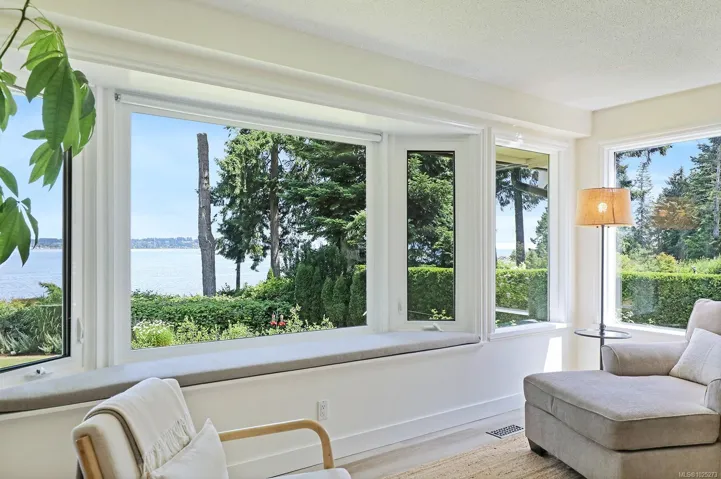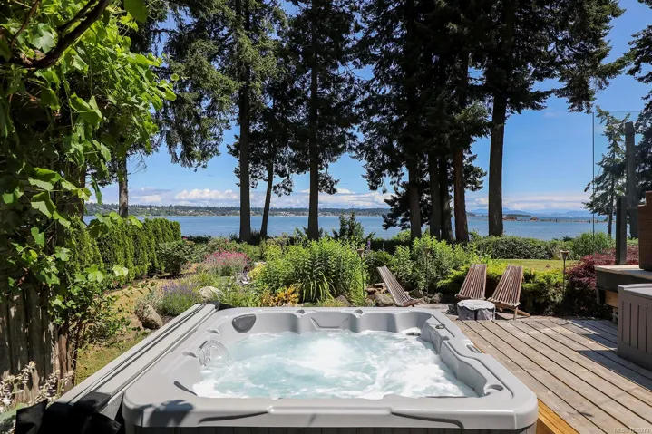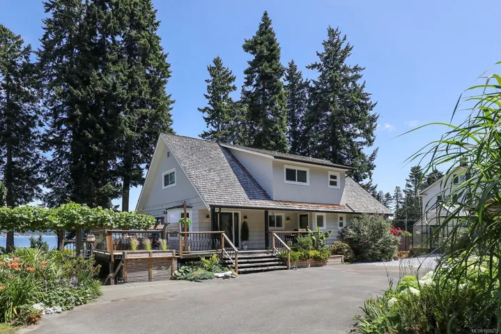 West Coast Waterfront! Stunning estate property, beautifully updated and renovated, delivering ocean views of the Comox Harbour, the Royston Shipwrecks and the Straight of Georgia. A captivating blend of beach chic and sophisticated style create a calming interior pairing formal details with a relaxed beach-house feel. The 3-level home of 3,626 sf, 4 BD/5 BA offers a unique plan w/ in-law suite 1 BD/ 1 BA, & separate entry for the lower level, ideal for home business. The carriage house, built in 2020 w/ 2 BD/ 2 BA upper-level suite plus 1 car garage, & lower level – heated, studio/garage/man cave 713 sf, plus a detached 2 car garage. With 2 septic systems, separate natural gas meters, 2 x 200 amp panels, H/W on demand in Carriage house, main house – 2023 Heat pump, appliances, windows 2017, luxury vinyl flooring 2024, updated carpets, lighting fixtures, baseboards, new paint interior/exterior, electric fireplace. Greenhouse, raised beds, 18 zone irrigation, regional water.