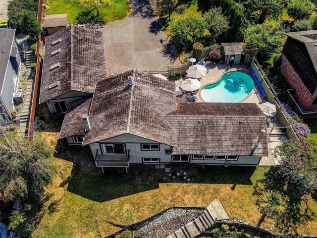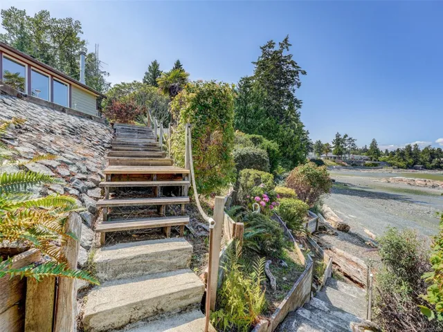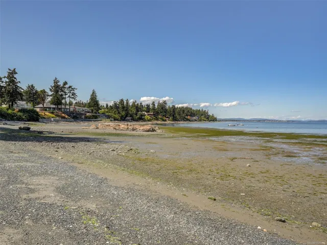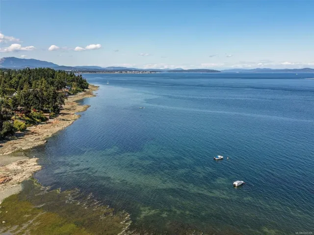 OCEAN FRONT PROPERTY WITH STUNNING PANORAMIC VIEWS. Tucked away on a dead end street, on a large private lot there’s an opportunity for you to build your dream home or update existing home. 5 bed, 4 bath home with vaulted ceilings & large picture windows to enjoy the breathtaking 180deg views. Upper has 3 beds & 2 baths, primary bed opens to a balcony with a view. Featuring a large kitchen with adjacent dining/living room. Lower level offers a large family room, rec room/studio, plenty of storage, 2 additional beds & 2 baths. Double garage has a convenient 3 pc bath. Outside, enjoy countless hours lounging by the pool (heated by sun) on the patio. Easy access to the sandy & pebble beach down the steps to beachcomb until your hearts desire. Fishing, boating, kayaking from your own backyard on beautiful Ferguson Cove with views of James Island & lights of Sidney. Public dock 100m away for crabbing & prawning. Parking for RV or boat.