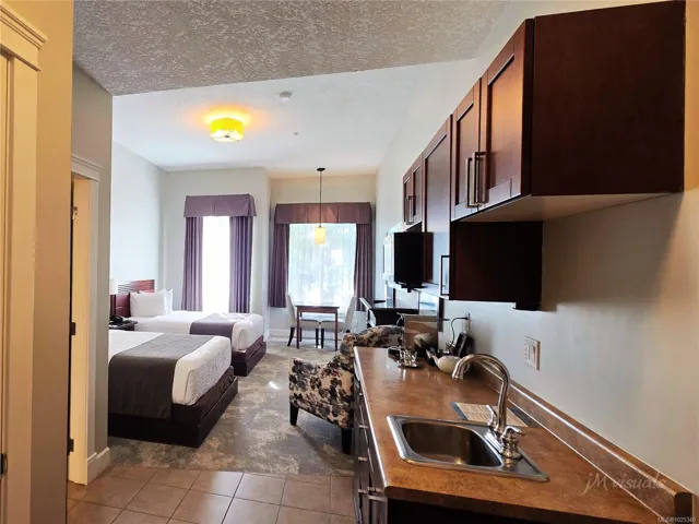 Experience West Coast charm and refined comfort in this luxurious main-floor corner suite at the Old House Hotel & Spa in Courtenay. This is a rare chance to own ALL 4 QUARTERS of the same unit – enjoy up to 3 weeks’ personal use monthly, with the rest earning income via professional hotel management. Vaulted ceilings and expansive windows create a bright, airy retreat, fully furnished with upscale finishes. Relax by the fireplace, prepare light meals in the petite kitchen, and unwind in the spa inspired bath with walk in shower and separate tub. Resort amenities include a heated pool, hot tub, Ohspa, fitness gym, EV charging, and lush grounds. Pet friendly, with underground parking and easy access to the riverway trail, shopping, dining, golf, beaches, Mt. Washington, and Comox Airport. This low maintenance getaway blends luxury, convenience, and revenue potential. Strata Fee: $591.40/month; Assoc. Fee: $872.68/month; GST applies; not for full time living.