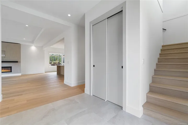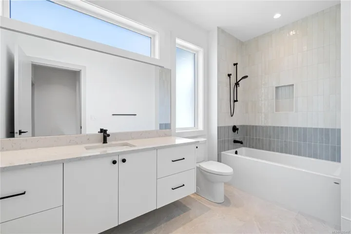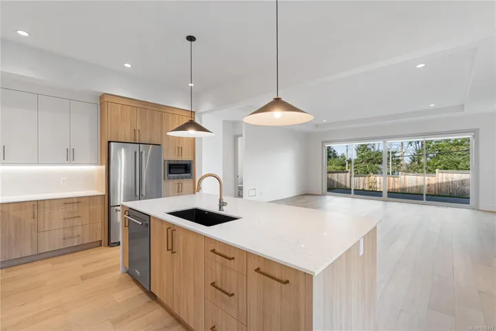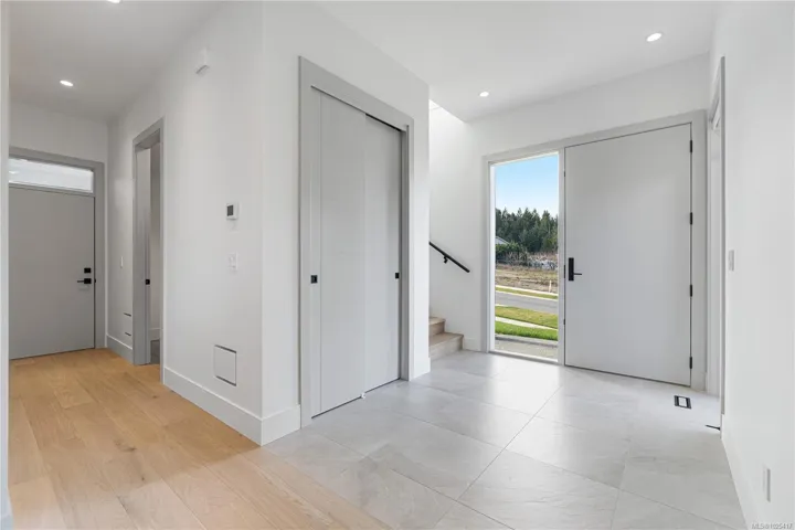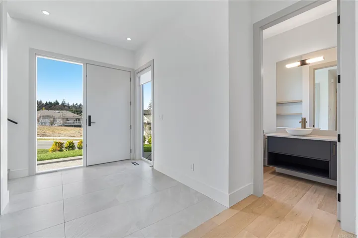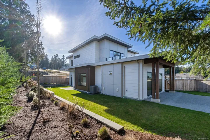 This beautifully crafted 3-bedroom, 3-bathroom home, built in 2024 by Windley Contracting, is located in Lower Lantzville, offers a peek-a-boo ocean view. The thoughtfully designed two-storey layout with a double garage features 10’ ceilings on the main floor, an open-concept kitchen, dining & living area, & an abundance of natural light throughout. Enjoy designer lighting, accented interior doors, and seamless access to two patios and the backyard—ideal for entertaining. All bedrooms & the laundry room are located upstairs, including the spacious primary suite with a private patio to enjoy your morning coffee & ocean view. High-end finishes include engineered hardwood flooring, quartz countertops and backsplash, an electric fireplace with feature wall, and tile in the entry, bathrooms, and laundry room. A heat pump ensures year-round comfort. Landscaping, fencing, appliances, and window coverings are included.