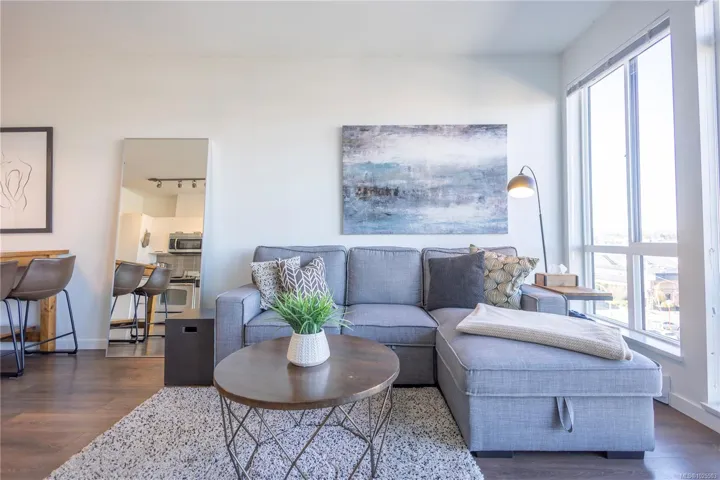 Top floor condo in the Union Building! This unit features unobstructed views of the city, mountains, and Victoria’s Inner harbour, all from your private balcony. 9ft ceilings, with floor to ceiling north-facing windows bring in tons of natural light while not overheating the space. Quartz countertops, stainless steel appliances, and in-suite laundry are just a few of the perks of this 2014-build. Bring your furry family members! The building is pet-friendly with no size or number limits. Parking? Yes! One parking stall in the secure underground parking and storage locker included. BBQ’s allowed. A great opportunity to own a clean, bright, modern & pet friendly home in one of Victoria’s most walkable neighborhoods!