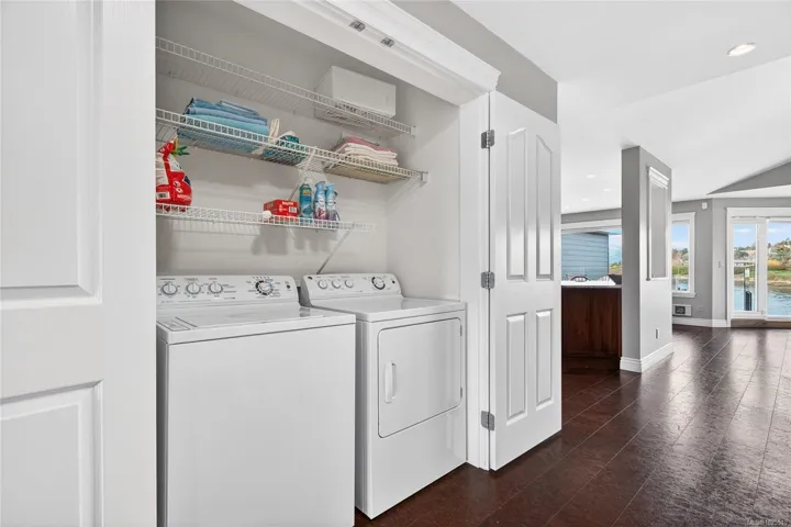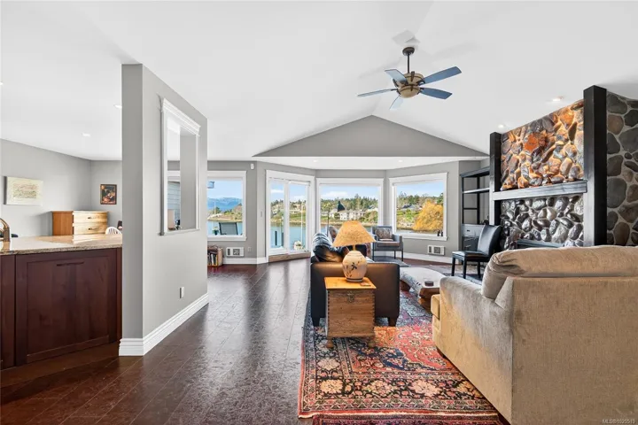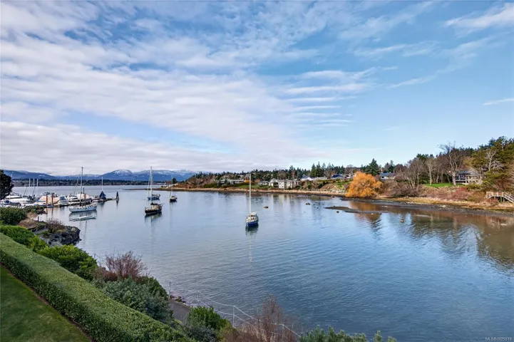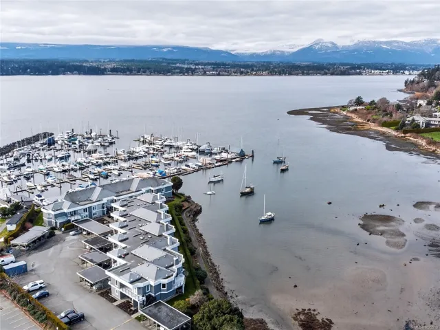 Welcome to Harbour Quay, the only luxury waterfront living in the Town of Comox. This beautifully updated second-floor unit was renovated with timeless style and quality craftsmanship, featuring well-built cabinetry topped w/ granite throughout. The open-concept design creates seamless flow between the kitchen, dining, and living areas, offering an inviting space for everyday living and entertaining. Thoughtful touches include ample in-suite storage and fully renovated bathrooms, each with walk-in showers. The bright and welcoming primary bedroom provides a peaceful retreat, while the versatile second bedroom w/ custom built-in cabinetry, functions perfectly as a guest room or home office. Two patio areas extend your living space outdoors, ideal for entertaining while enjoying views of Comox Marina Park, the ocean, and the stunning Beaufort Range. This sought-after complex has recently completed envelope remediation and is just steps to the marina, local amenities, and restaurants.