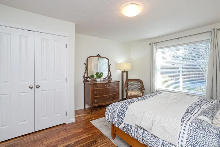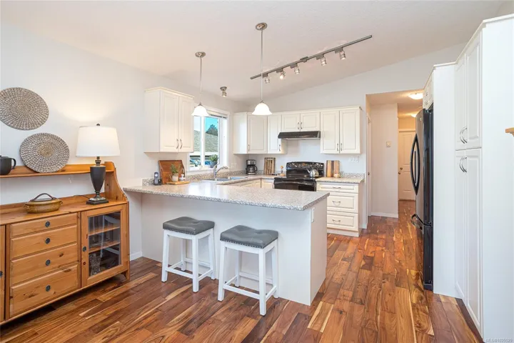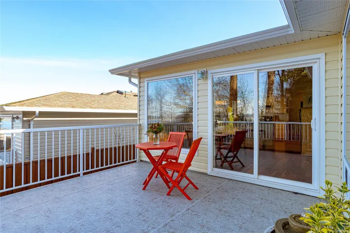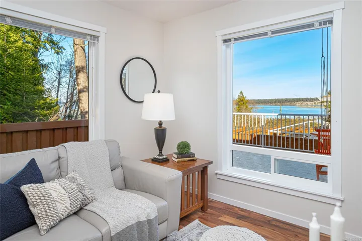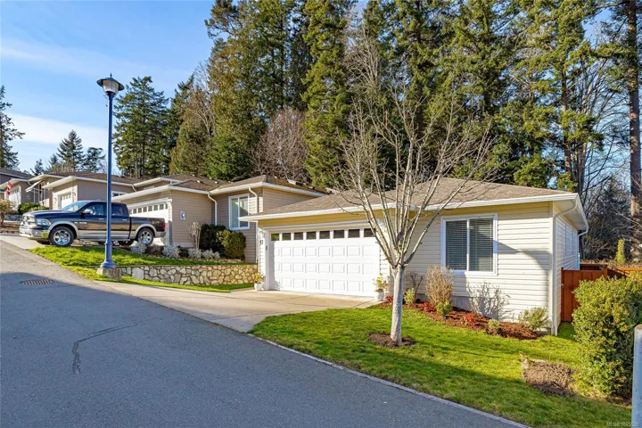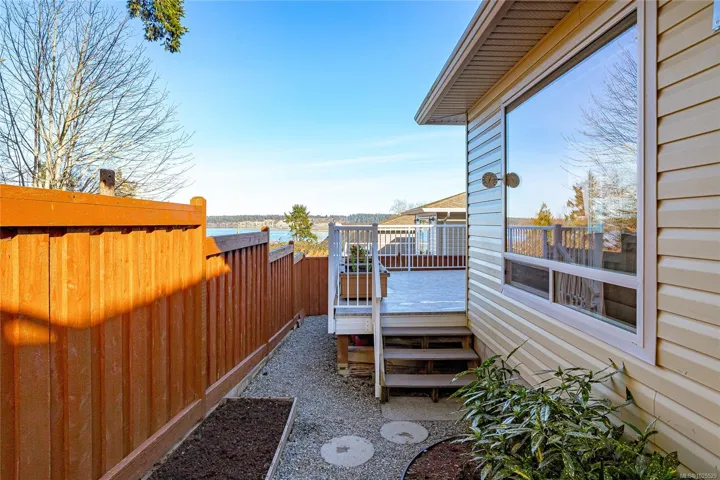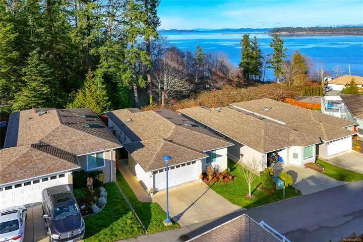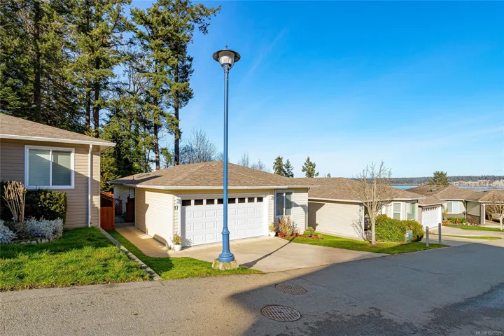 Enjoy million-dollar views overlooking Saanichton Bay at an accessible price point! This immaculate 2-bed, 2-bath home offers 1,400 sq.ft. of one-level living space in the desirable 45+ gated community of Hummingbird Village, an enclave of just 29 homes situated on leasehold land. A premier home in the complex, it showcases sweeping ocean views to James Island and beyond. The bright living room features high ceilings, a cozy gas fireplace and access to a private deck. A spacious dining area with vaulted ceilings flows into the modern kitchen with eat-up bar, ample cabinetry, and excellent storage. The primary bedroom offers a walk-in closet & skylit ensuite, while the guest bedroom also has its own ensuite—ideal for visitors. Highlights include a large laundry room, double garage with workbench, heated crawlspace, and a landscaped, easy-care fenced yard. Assembled onsite with conventional construction on a poured concrete foundation. Close to Saanichton, Sidney, the airport & ferries.