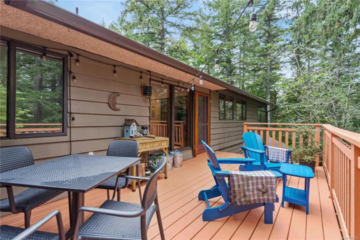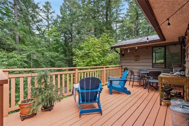 The natural beauty & serenity of your surroundings envelop you and you can feel & smell nature; yet you are a mere fifteen minutes to town. Leave your cares behind when you come home to this post and beam style home with updated kitchen, hardwood floors, terra cotta tile in the kitchen & family room, wood stove, 4 bedrooms & a family room on the main plus a 5th bedroom & an office down. Every room looks out to your beautiful & natural wooded 2.7 acres. This home has been well maintained and presents a beautiful turn key space perfect for families or those seeking peaceful convenient living. Recent updates include exterior paint and siding, metal roof, refinished and painted deck, infloor radiant heating, and well maintained garden area ready for your fruits and veggies. There is a separate workshop. Prospect Lake & Francis King Park are just seconds away yet it is an easy commute to town & U Vic, Victoria General Hospital & Royal Roads College and all amenities.
