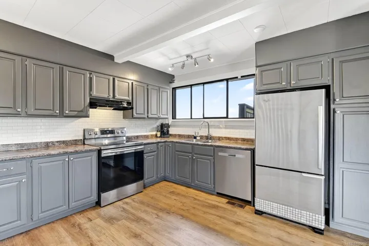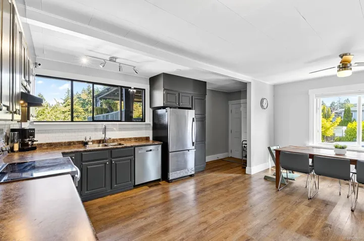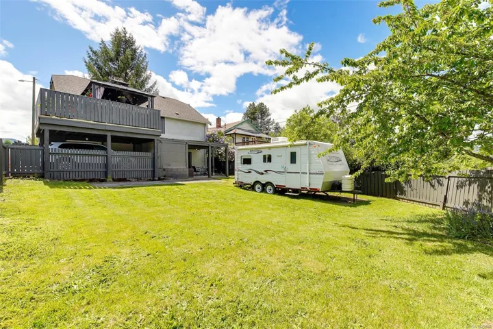 REMODELED CHARACTER HOME has modern day family appeal. Main floor features a large welcoming living room, a spacious open kitchen with sleek stainless steel appliances and an adjoining dining area, a primary bedroom, a second bedroom and a four piece main bath. Upstairs there are two more bedrooms and lots of storage space. The walk-out lower level provides lots of finished multi-function space including an office area, room for an overnight guest, a two piece bath, an open family room, laundry area and tons of storage space. An outdoor deck with mountain and city views, a quite patio area, a carport, parking for an RV and a fenced backyard with fruit trees completes this package. Upgrades include newer flooring and paint, a newer natural gas furnace and roof, and vinyl cased thermal windows. Walking distance to shopping, services, the Harbour Quay and recreation facilities.