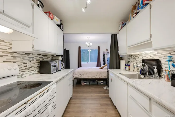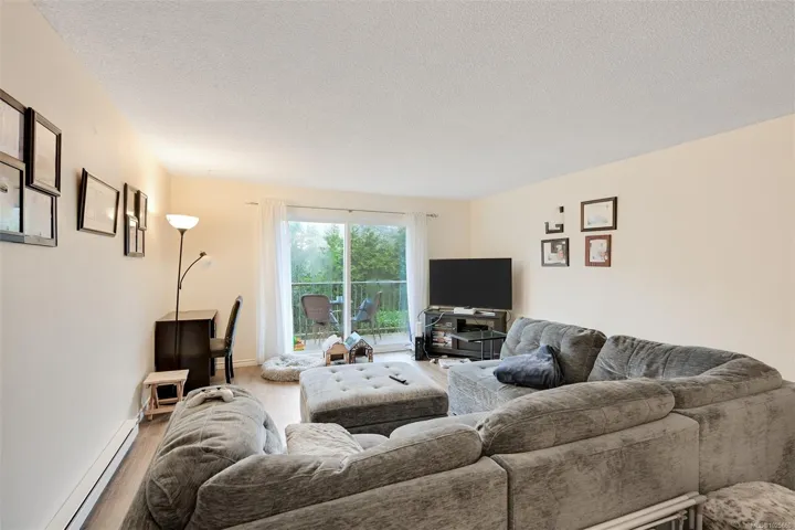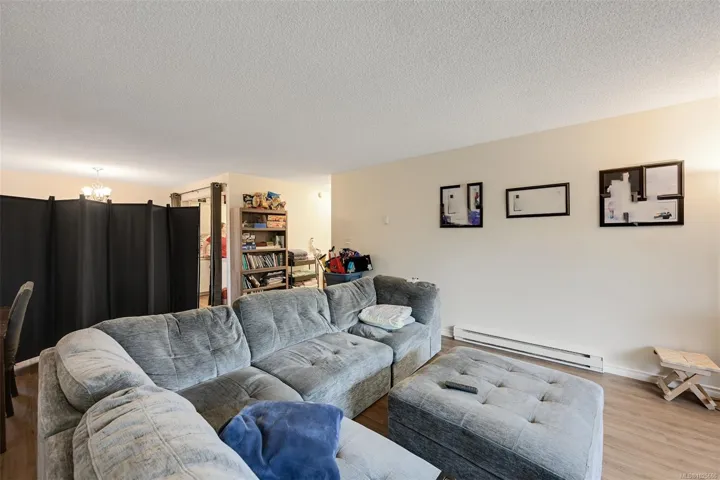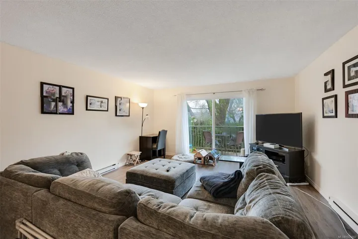 1083sqft two bedroom condo in the heart of Esquimalt at Harbour View House! Corner unit on the quiet side of the building with large floorplan including 22×15 living room, 7×4 in-unit storage room, 14×13 primary bedroom with walk-in closet and 11×10 second bedroom! Open living and dining space, 11×5 balcony with green outlook, updated laminate flooring, newer bathtub and surround, fresh paint, modern lighting and well equipped kitchen with dishwasher and newer countertops. Small 14 unit strata is well maintained with updated balconies and vinyl windows and the strata fee includes hot water. Unit comes with one parking stall, all ages welcome, BBQs and pets allowed (2 cats and 1 dog up to 20lbs). Ideal for first time buyers, military personnel, a great situation for a roommate or solid investment property. Convenient location, walk to Naden, close to the ocean and Saxe Point, Esquimalt Rec Centre, parks, groceries, transit and more.