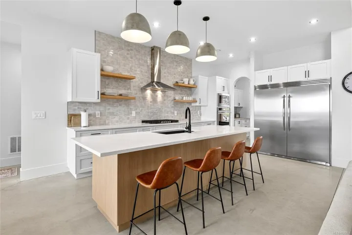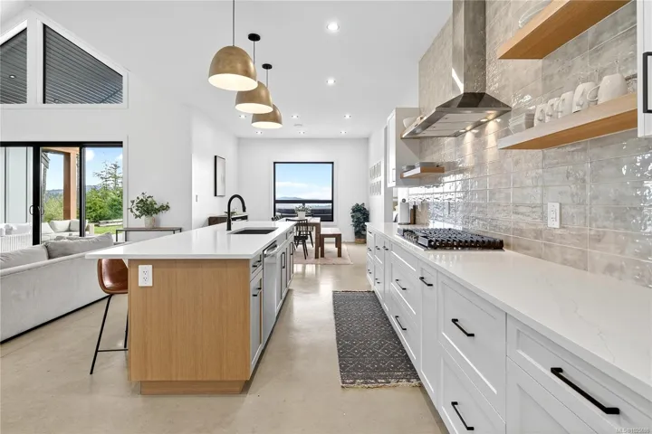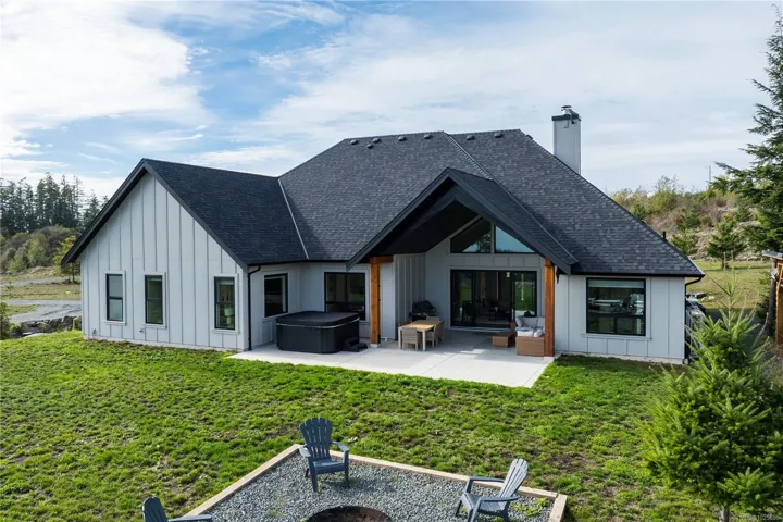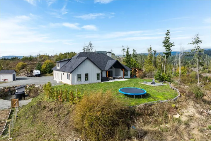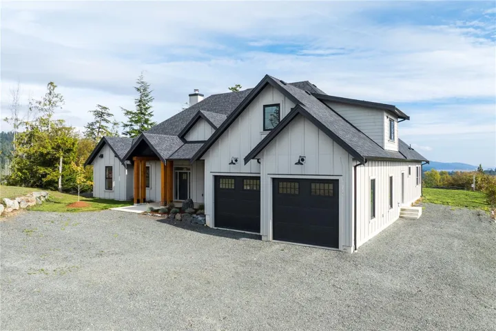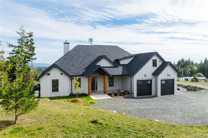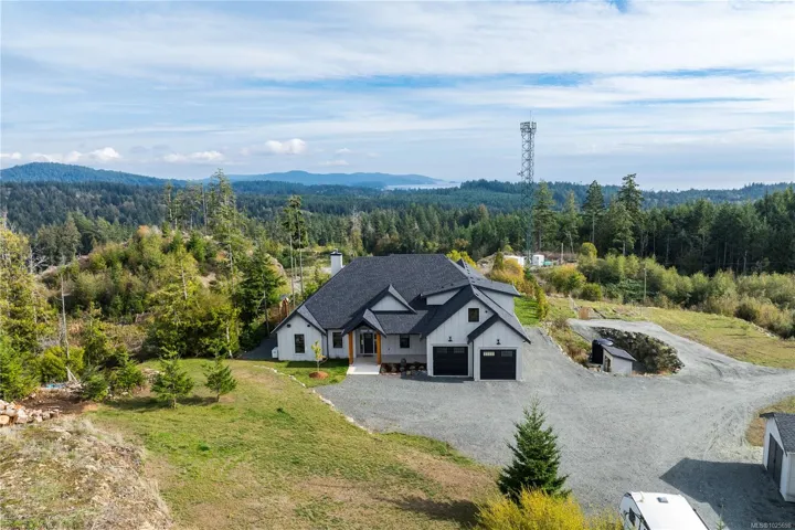 Builder’s Own West Coast Masterpiece! This stunning 3BD, 3BA + den rancher offering nearly 2,700sf of luxurious single-level living on a private 10-acre estate lot is ready for new ownership! Main living areas showcase sweeping views of the Sooke Hills, Secretary Island & Olympic Mountains beyond! Built with exceptional craftsmanship & modern West Coast flair, the contemporary-styled home features polished concrete floors (radiant heat ready), heat pump for efficient comfort & soaring vaulted ceilings with striking wood-burning FP. Designer kitchen boasts premium appliance package, entertainment-sized island & butlers pantry. Retreat to your generous primary bedroom with spa-inspired ensuite, WIC & direct laundry access. Upstairs, the 586sf self-contained 1BD/1BA legal suite is ideal for family, guests, or income. Oversized garage, detached shed, & ample parking for all the toys. Covered patio for year-round enjoyment. A rare combination of style, space & setting. This home has it all!