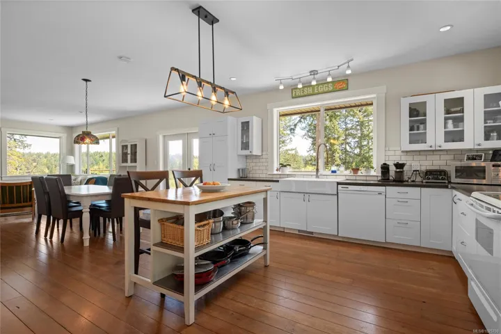 Experience the ideal balance of peaceful country living and refined lakeside living on this exceptional 5-acre waterfront estate. Thoughtfully custom-built, the home offers 4 bedrooms, a den, an office, and 4 bathrooms, plus over 900 sq ft of unfinished basement space—ideal for a future suite or family room. Shared by just five neighbouring properties, the quiet, motor-free lake ensures rare privacy and serenity. The upper level features four bedrooms, including a spacious primary suite with a private ensuite. The main floor showcases an open-concept design connecting the kitchen, dining, and living areas, all framed by breathtaking mountain and lake views and an expansive wrap-around deck. The lower level offers 12-ft ceilings, an office, and a partially finished bathroom, with room to customize. With space for additional outbuildings, this is a rare and private lakeside retreat. Be sure to view the video and supporting documents. Measurements are approximate, buyers to verify.