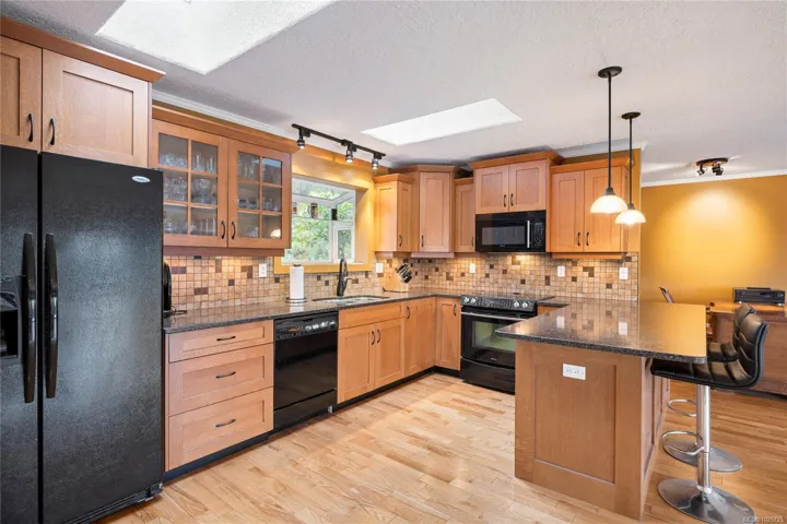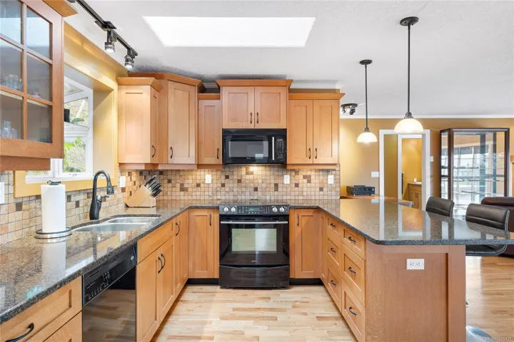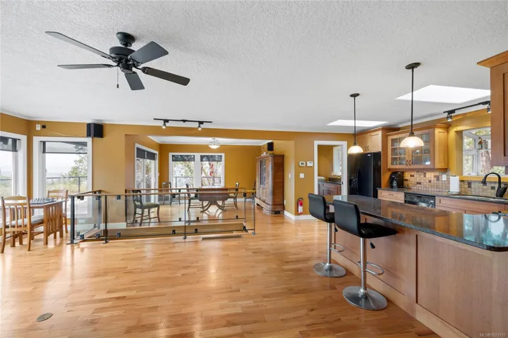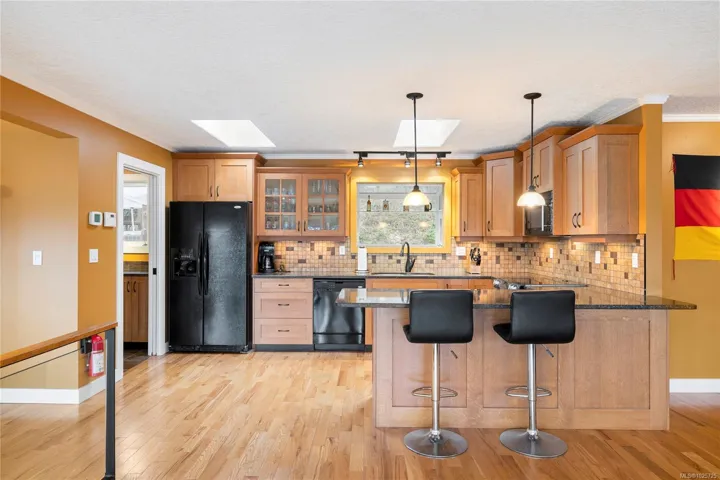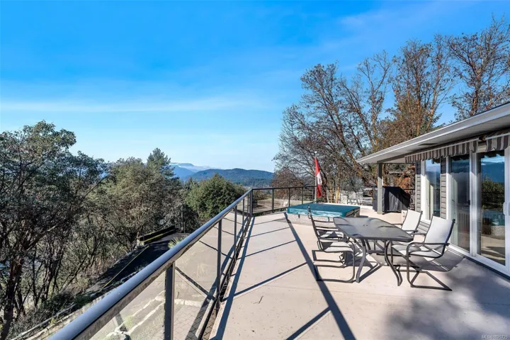 Welcome to 1158 Kathleen Dr. Perched in one of Maple Bay’s most sought-after neighbourhoods, this architecturally designed home captures sweeping views of Lake Quamichan, the Cowichan Valley & mountains. Offering over 2,510 sqft, the home features 3 bedrooms, 3 bathrooms, plus a spacious pool room that can easily be converted into a 4th bedroom, office, or den. Both levels include a primary suite with an ensuite. Solid oak hardwood floors, crown moulding and banks of windows enhance the bright main living areas, while the kitchen showcases warm wood cabinetry and granite countertops. Two propane fireplaces, a new hot water tank, and a brand new heat pump add comfort and efficiency. Step onto the expansive deck with glass railings, awnings and a built-in hot tub to soak in the views. A private paved driveway, professionally engineered retaining walls, an attached double garage, and exceptional boat/RV parking complete this private, tranquil property, offering ample storage.