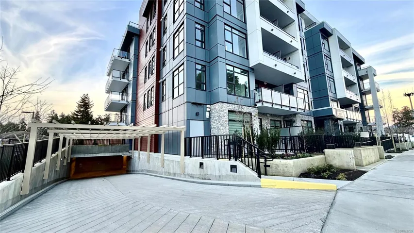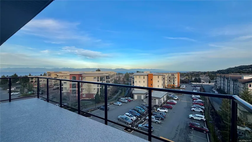 Prestige 1-bdm corner suite on the 5th floor at The MINT—brand new North Nanaimo condos—featuring sweeping 270° ocean, mountain, and city views from expansive corner. This bright, modern home offers an open-concept kitchen with quartz countertops and an American-made Frigidaire appliance package, plus in-suite Electrolux front-load stacked washer/dryer. Enjoy beautiful, top-quality laminate flooring throughout, a spacious bdrm w/ corner windows for abundant natural light, and a walk-in closet. The stylish bthrm showcases a full-height tile tub surround and quartz vanity for a clean, upscale finish. Step outside to an extensive wrap-around balcony—perfect for relaxing, entertaining, and soaking up sunny days. Comfort and convenience continue with secure building entry, underground designated parking, and a storage locker. Unbeatable location next to Costco, close to Woodgrove centre, schools, transit, & everyday amenities. Ideal for first-time buyers, small families, or smart investors.