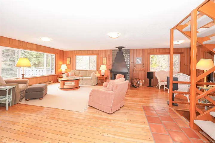 Sunny waterfront 3.24 acres southerly facing with large 5 bdr home, guest cottage, detached workshop & barn, oceanside sauna building & over 1,000 sq ft of deck & patio area for outdoor living. Master suite with add’l bdr upstairs, main level all living area and downstairs 3 bdrs + potential 2nd kitchen and large rec/family room, all opening up to lots of room outdoors. RV & Boat parking. This home is perfect for a large family or group looking to enjoy the best of an island getaway or full time island living. Telus fiber optic internet available to make working from home a breeze. Detached guest cottage has a small kitchen/living area and loft upstairs. Workshop with beside covered double carport. Small barn/storage under. Easy walking distance to coffee shop, marinas, pub, swimming beaches, the ferry terminal to Chemainus (10 sailings daily for $ 21.75 car & driver return with Experience card). No Vacancy or Speculation tax here.
