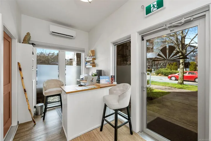 Own the space that works for you in more ways than one. A standout opportunity for entrepreneurs, investors, and professionals seeking the rare advantage of true live/work flexibility in a prime location. Thoughtfully designed with a clear separation between the commercial and residential spaces, this unit gives your business a polished storefront feel without sacrificing the comfort and convenience of home. Ideally located just off Veterans Memorial Parkway, the commercial entrance offers excellent accessibility and exposure in one of Langford’s most connected areas. The residential suite features a full kitchen, built-in Murphy bed, and 4-piece bath, while MU1A zoning allows for a wide range of permitted uses including retail, office, personal services, daycare, schools, and financial services. Separate heat pumps serve both spaces for efficient year-round comfort. Rare, versatile, and exceptionally well located, this property offers both immediate functionality and long-term value.