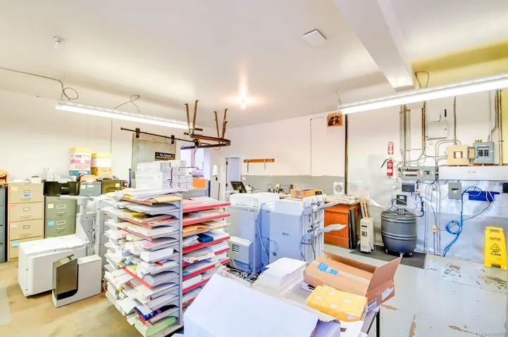 In the heart of Alberni Valley’s business district, this nearly 10,000 square foot property houses two esteemed local businesses: the Alberni Valley News and Houle Printing. Inside, expansive vaulted ceilings create an impressive sense of space, complemented by ample storage throughout. The interiors have been thoughtfully redesigned, showcasing newly refurbished offices that blend functionality with contemporary design elements and a modern central air system ensuring comfort year-round. Ideal for continued commercial use or adaptation to various professional ventures, this property offers a unique opportunity to establish or expand within a thriving community hub.