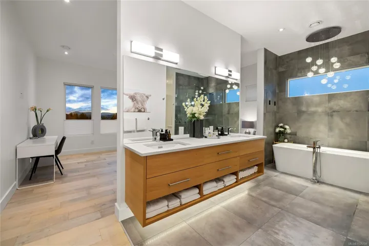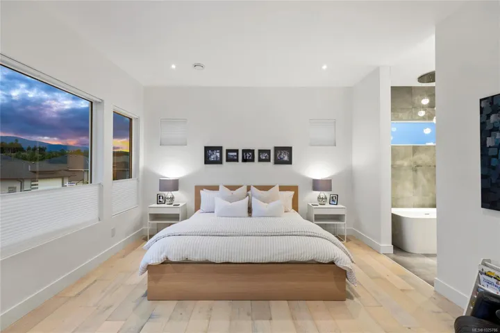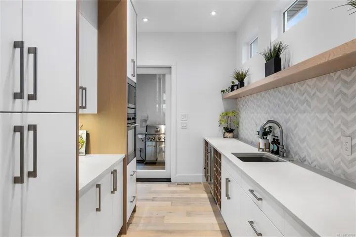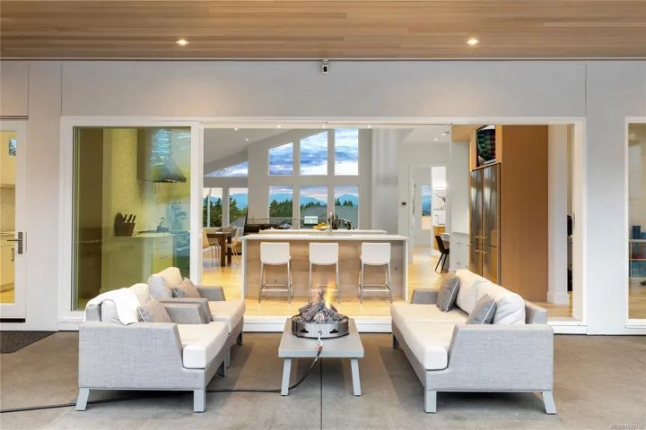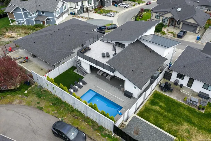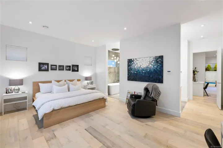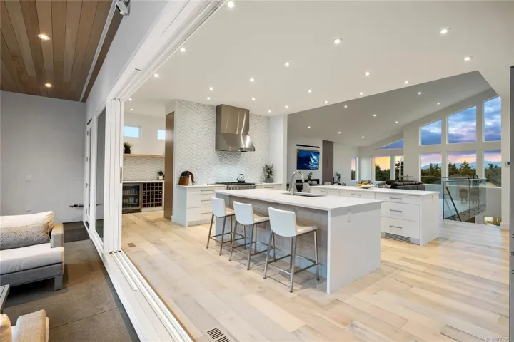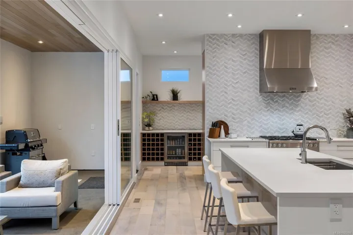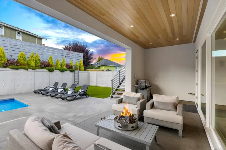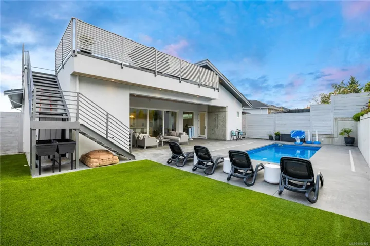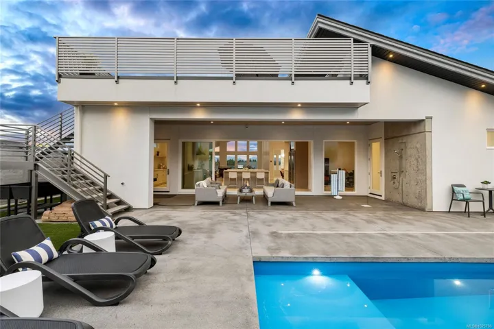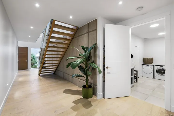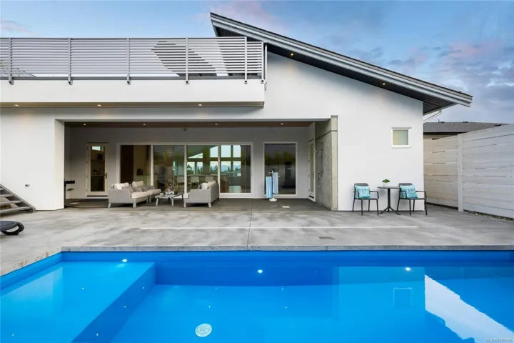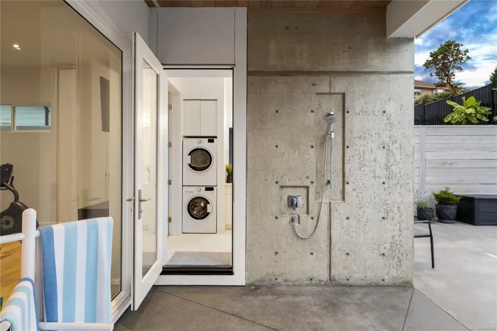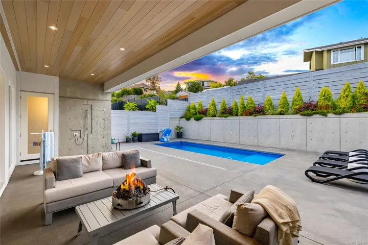 Modern Luxury in the Heart of Hammond Bay. The open concept main living area is a showstopper, featuring soaring vaulted ceilings, architectural concrete feature walls, and a striking 72″ linear fireplace that creates a warm, contemporary ambiance. Expansive 20-foot sliding glass doors seamlessly connect indoor living to an outdoor oasis, opening onto a private, heated in-ground swimming pool, ideal for year-round enjoyment and spectacular entertaining. The Chef-inspired kitchen is equipped with a premium Miele appliance package, sleek quartz countertops, and a generous butler’s pantry, offering both elegance and practicality. Custom open-riser wood stairs add a sculptural design element. while engineered oak flooring flows throughout the home, enhancing its modern aesthetic. Aluminum exterior stairs lead to an impressive 800 sqft rooftop deck showcasing breathtaking ocean views. Two separate laundry areas add everyday ease. Measurements are approx. & should be verified.