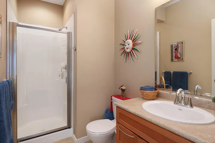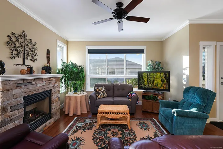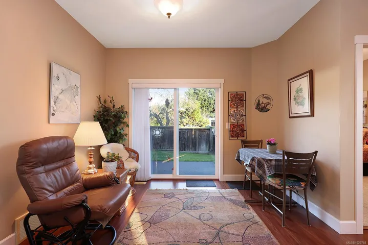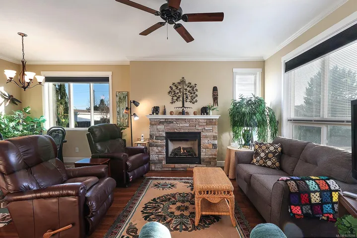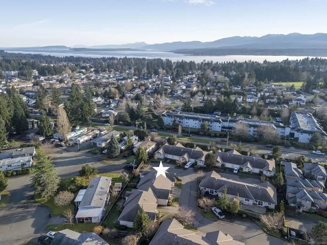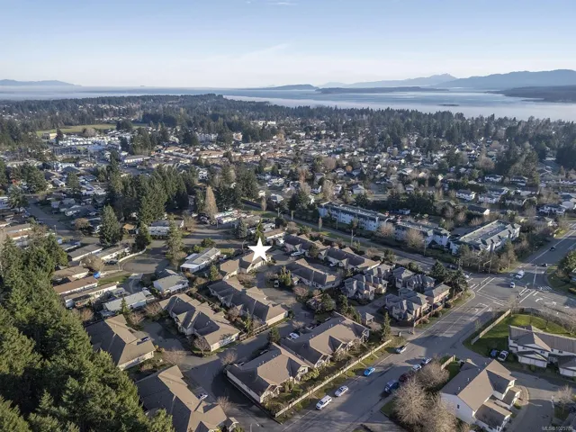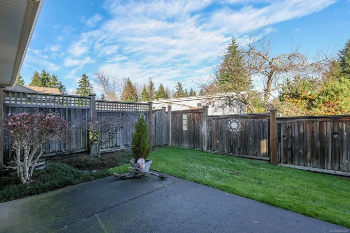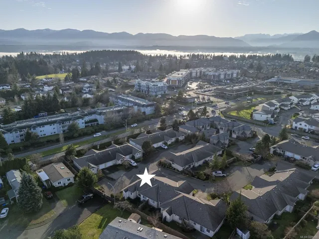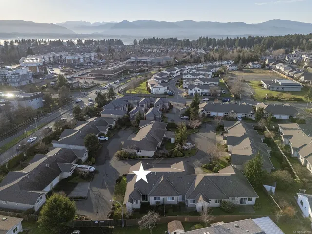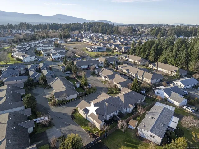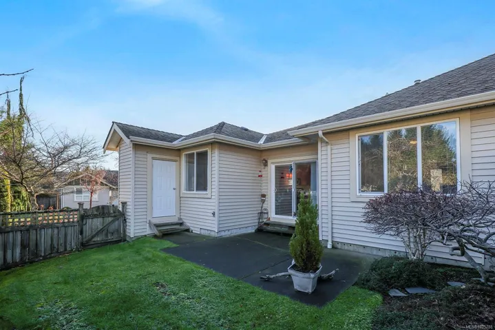 Premier corner unit with full sun exposure and a fenced yard! Located in Aspen Wynde, a charming community of one-level patio homes in Comox. This lovely unit, 2 BD/ 2 BA, 1,140 sf, built in 2008, boasting 9’ ceilings, gas fireplace, crown moulding and large windows illuminating a spacious plan. A generous sized master bedroom w/ walk-in closet & 4 pce bath w/ an easy step into shower, & a guest room that could be a home office or craft room. A well-designed kitchen offers a window over the sink, maple shaker cabinets, & an island with seating for guests. The adjacent family/media room offers sliding door access to the fully fenced private patio, ideal for morning coffee in the sun or cool shade on a hot summer day. With a small storage room for golf clubs, bikes, etc., and a single car garage, energy efficient gas forced air furnace. Gas H/W tank 2024. There are no age restrictions, 1 dog or 1 cat. Located near transit, a short stroll to Quality Foods & Land and Sea Brew Pub!