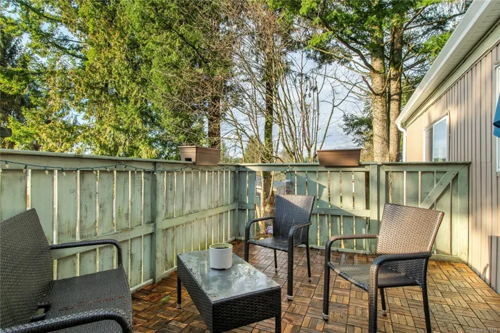 The primary bedroom offers a private ensuite and walk-in closet, while the second bedroom and full bath provide comfortable space for family or guests. Outside, enjoy a wrap-around yard with room for gardening, playing, or relaxing on the deck. Corner lot placement adds privacy and extra outdoor flexibility.